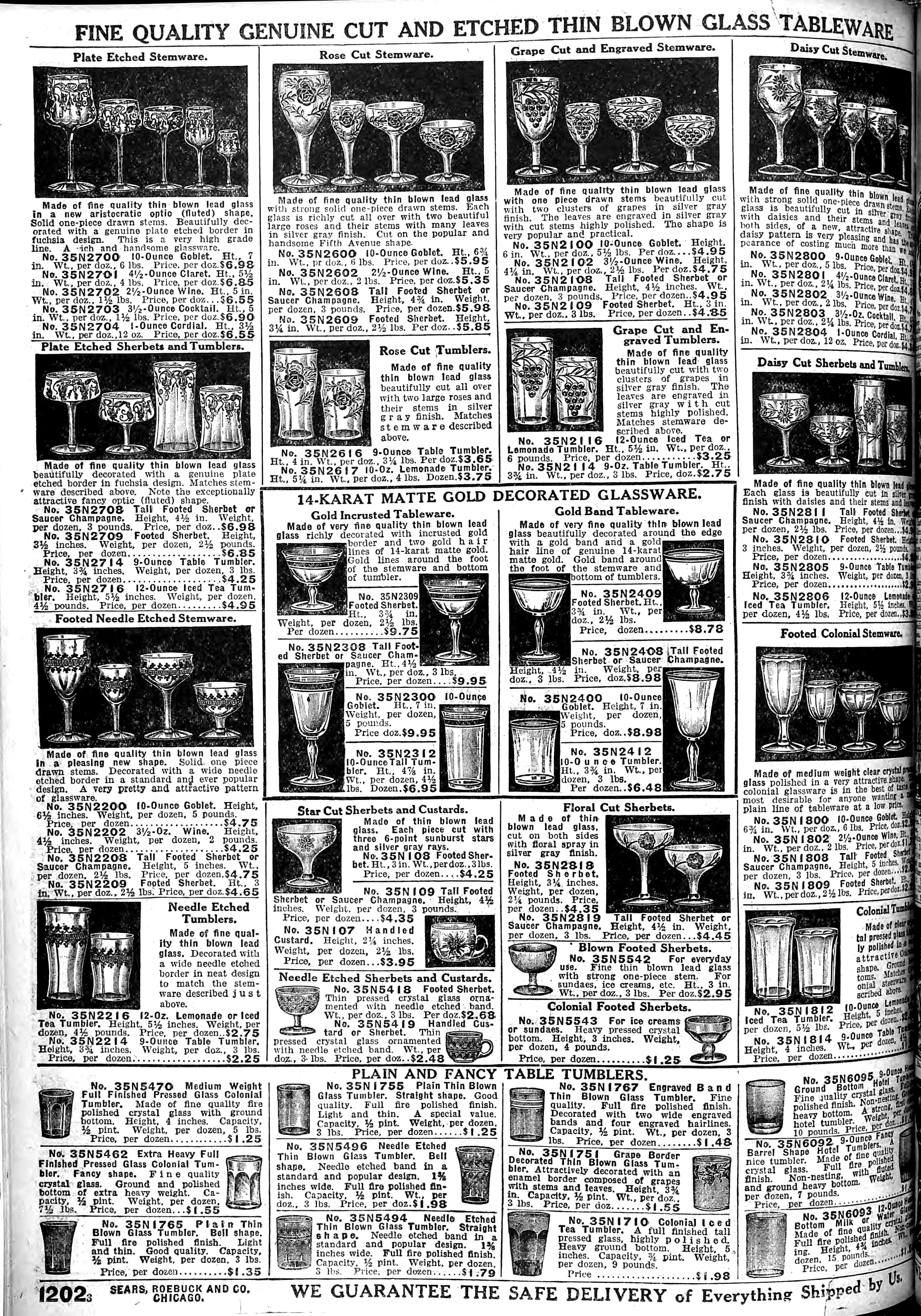 | 1918 | Fall | 1202 | ½ Pint Needle Etched Thin Blown Glass Tumbler, Straight Shape | 9415 - 9 oz. Blown Tumbler, Needle Etching 272 or very similar | $1.79/doz |