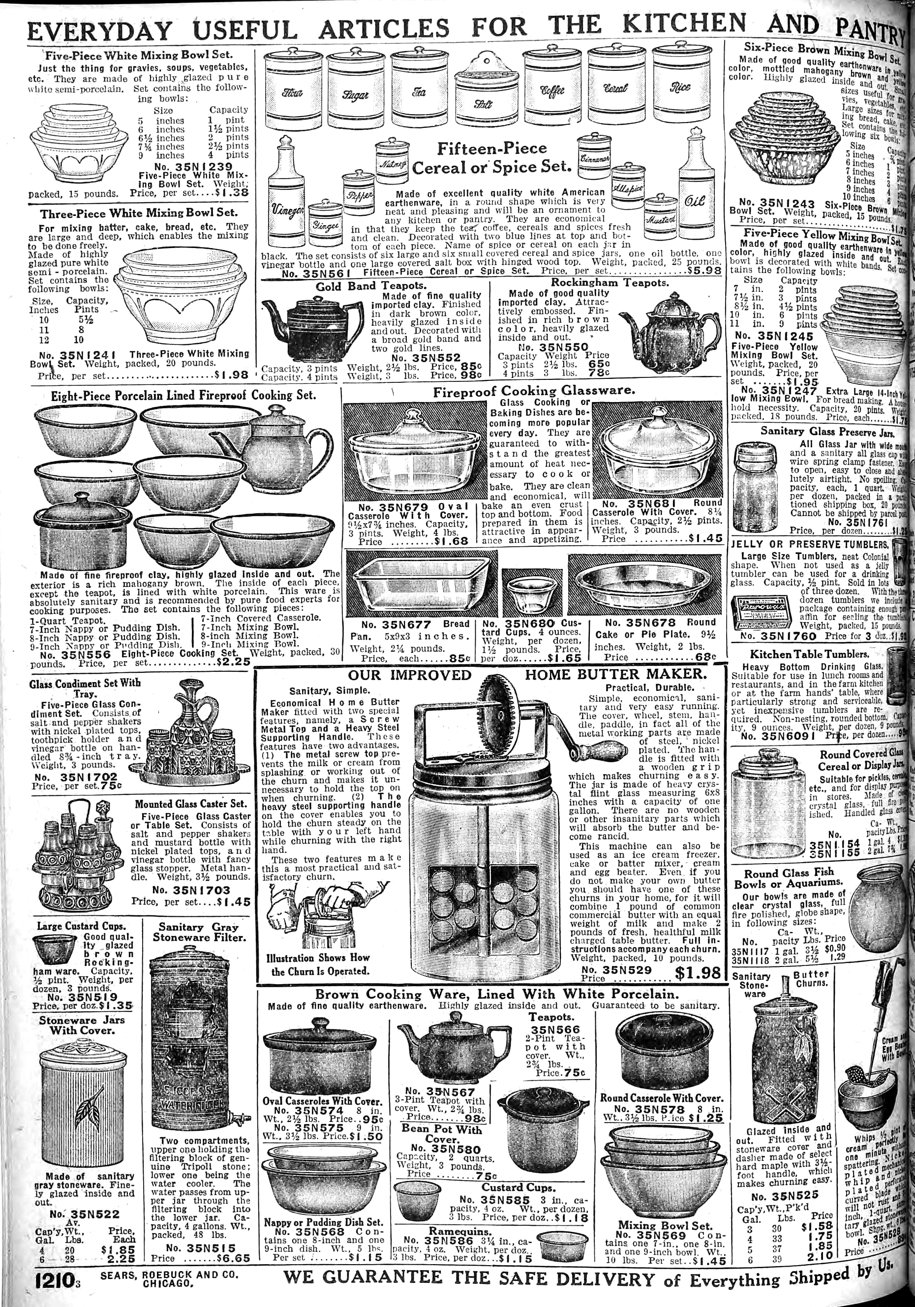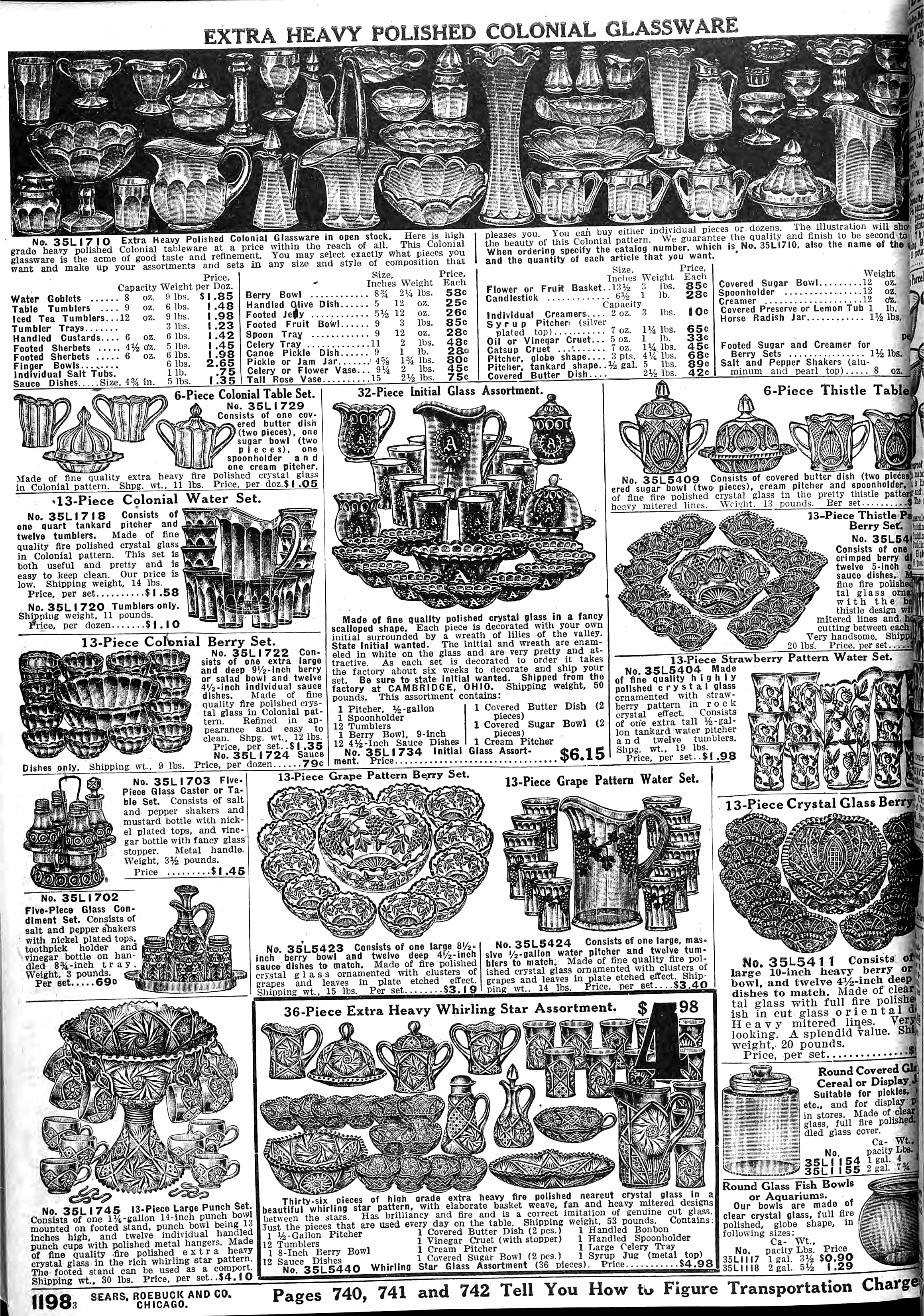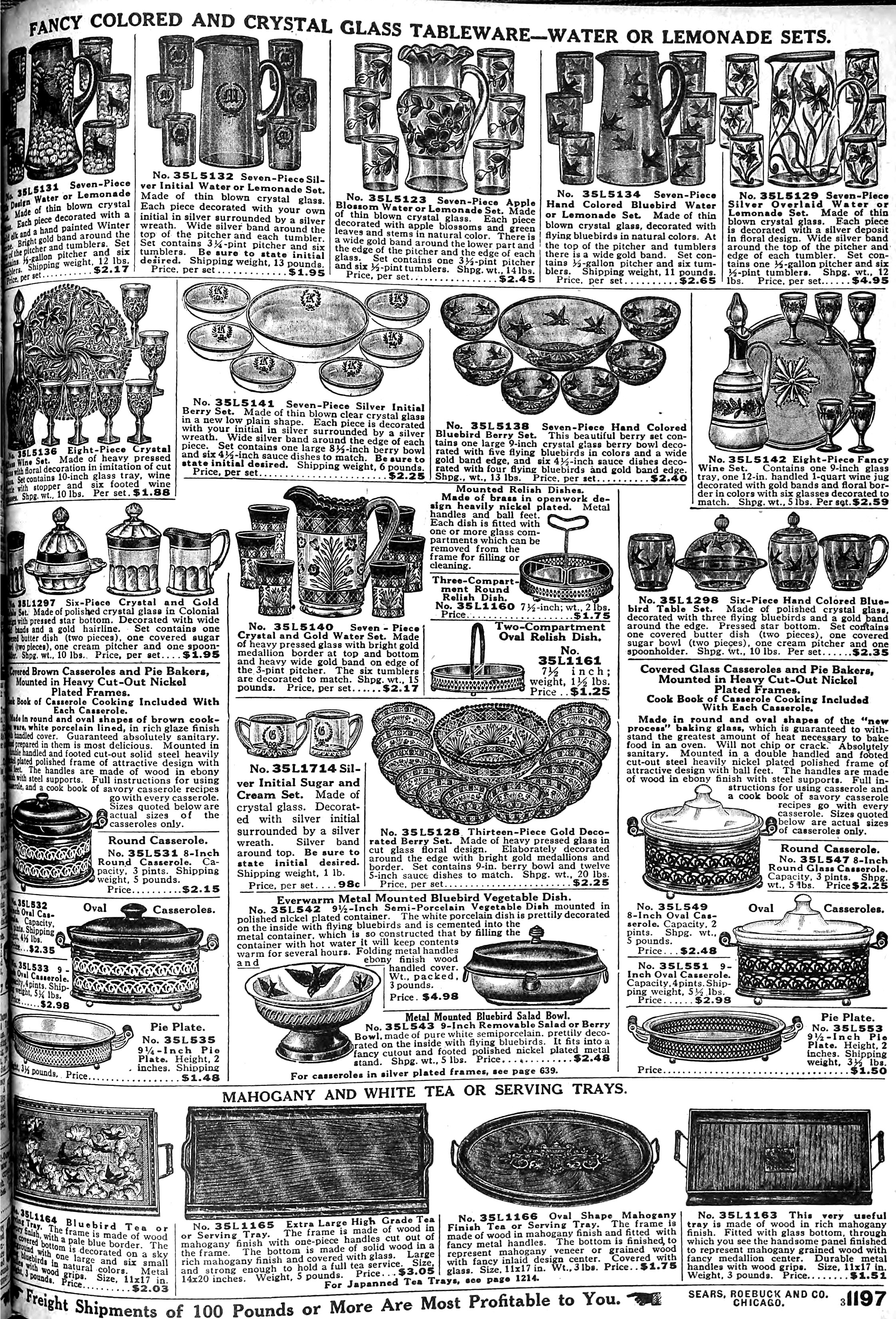 | 1918 | Fall | 1208 | 6-Piece Genuine Cut Glass Table Set Covered Butter Dish (2 pieces) Covered Sugar Bowl (2 pieces) 1-Pint Creamer Spoon Holder |