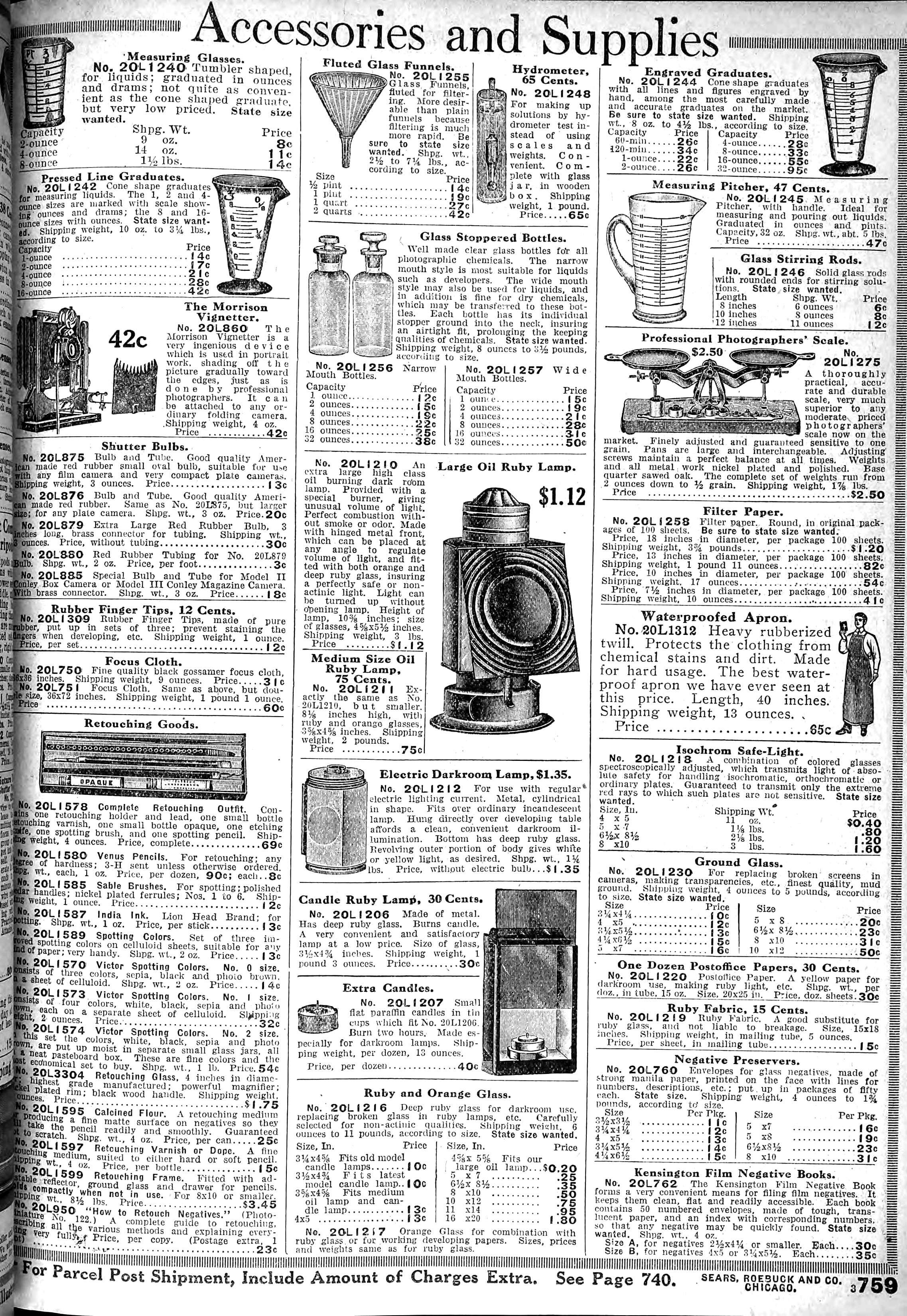 | 1918 | Spring | 759 | Hydrometer | No. 6 - Silver Solution Actinometer | $0.65/ea |