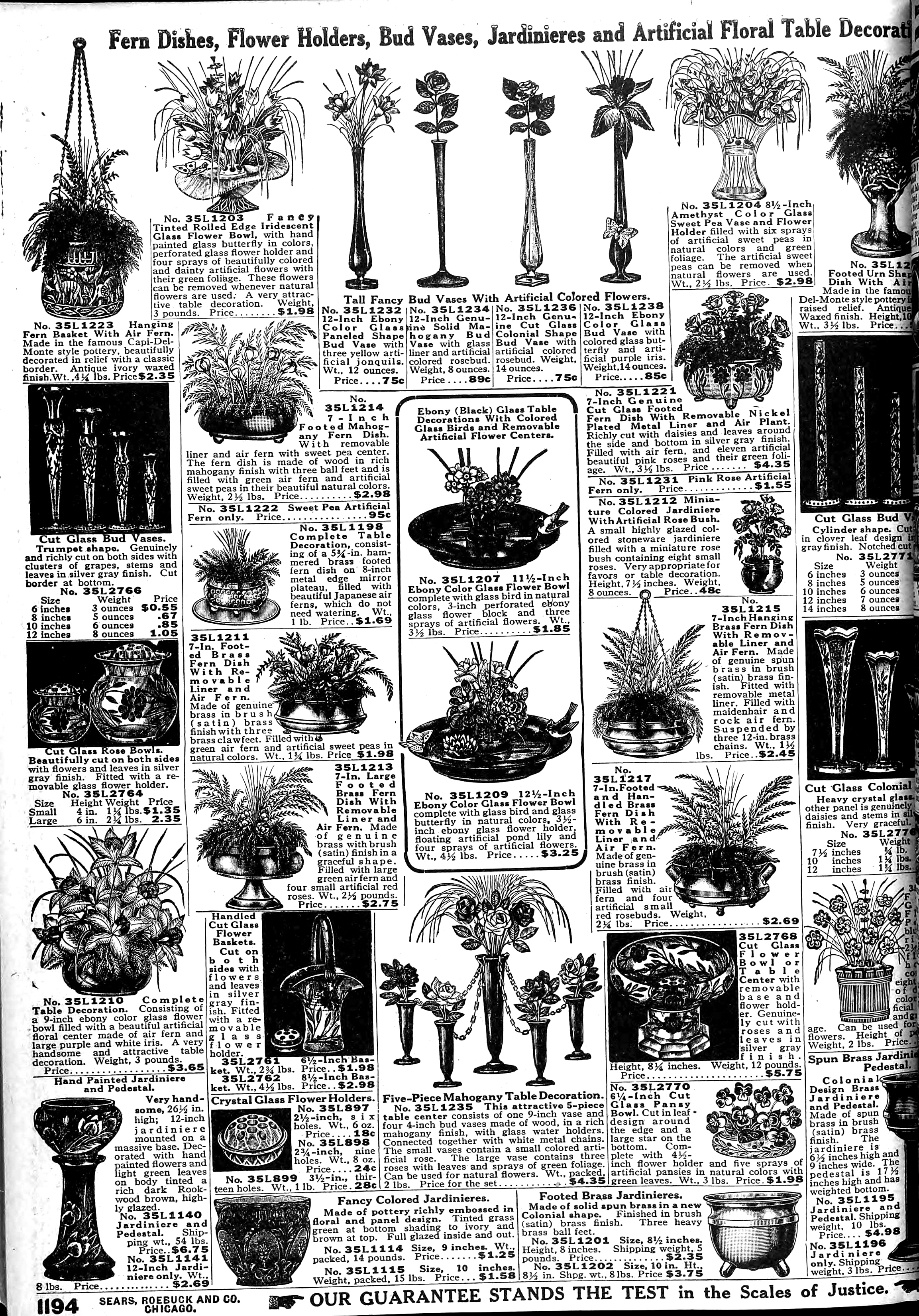 | 1918 | Spring | 1194 | Tall Fancy Bud Vases with Artificial Colored Flowers 12" Ebony Colored Glass Panel Shaped Bud Vase 12" Genuine Cut Glass Colonial Shape Bud Vase 12" Ebony Colored Glass Bud Vase with Colored Glass Butterfly |