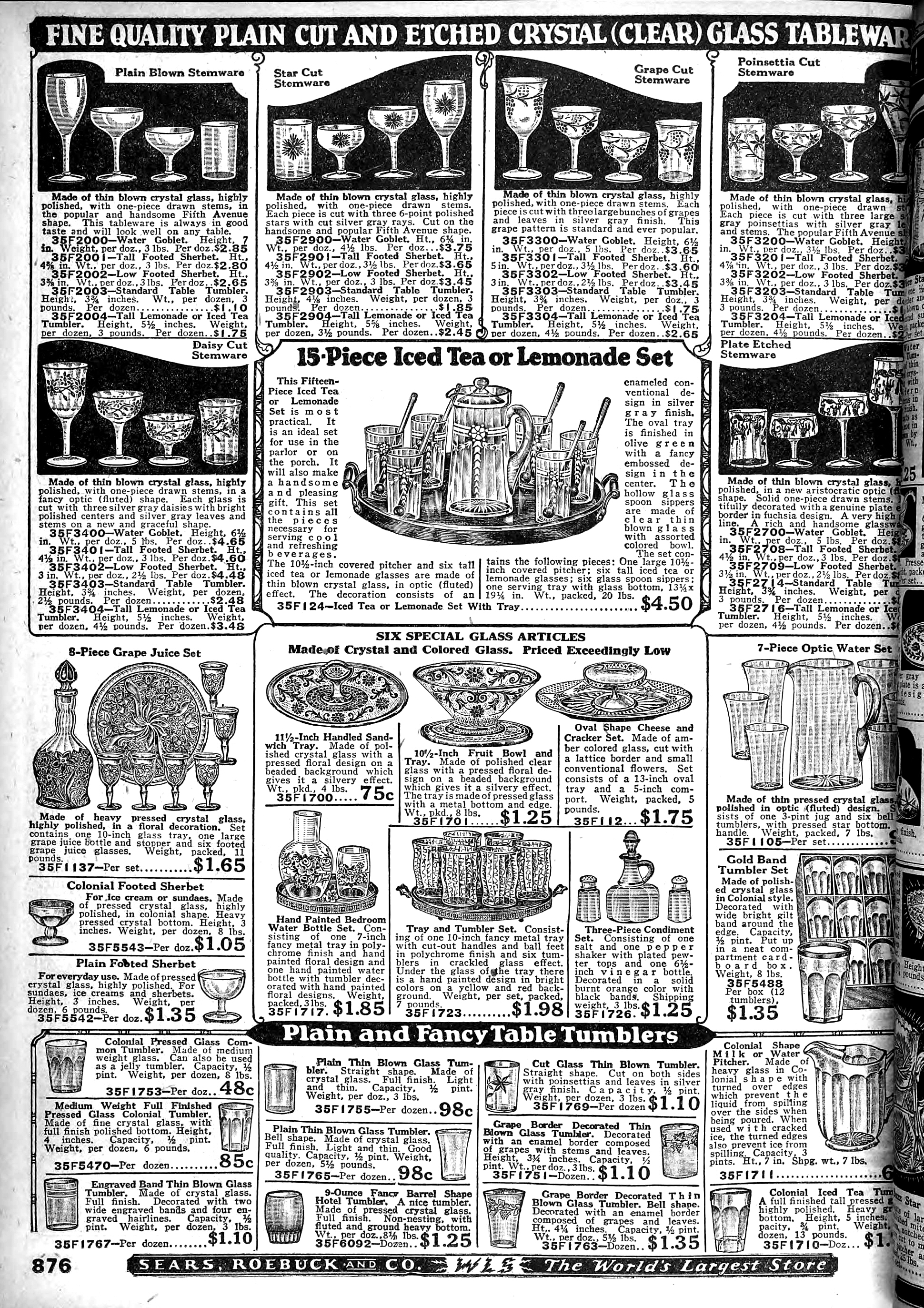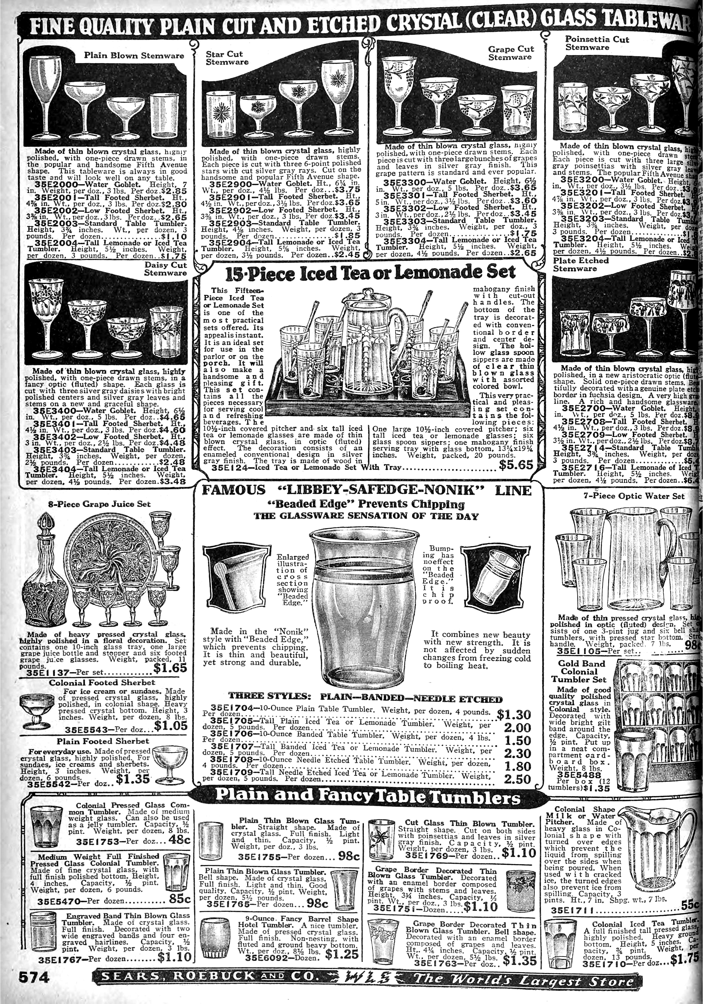 1926 Fall 876 Colonial Pressed Glass Common Tumbler No. 88 - 8 oz. Colonial Tumbler $0.48/doz