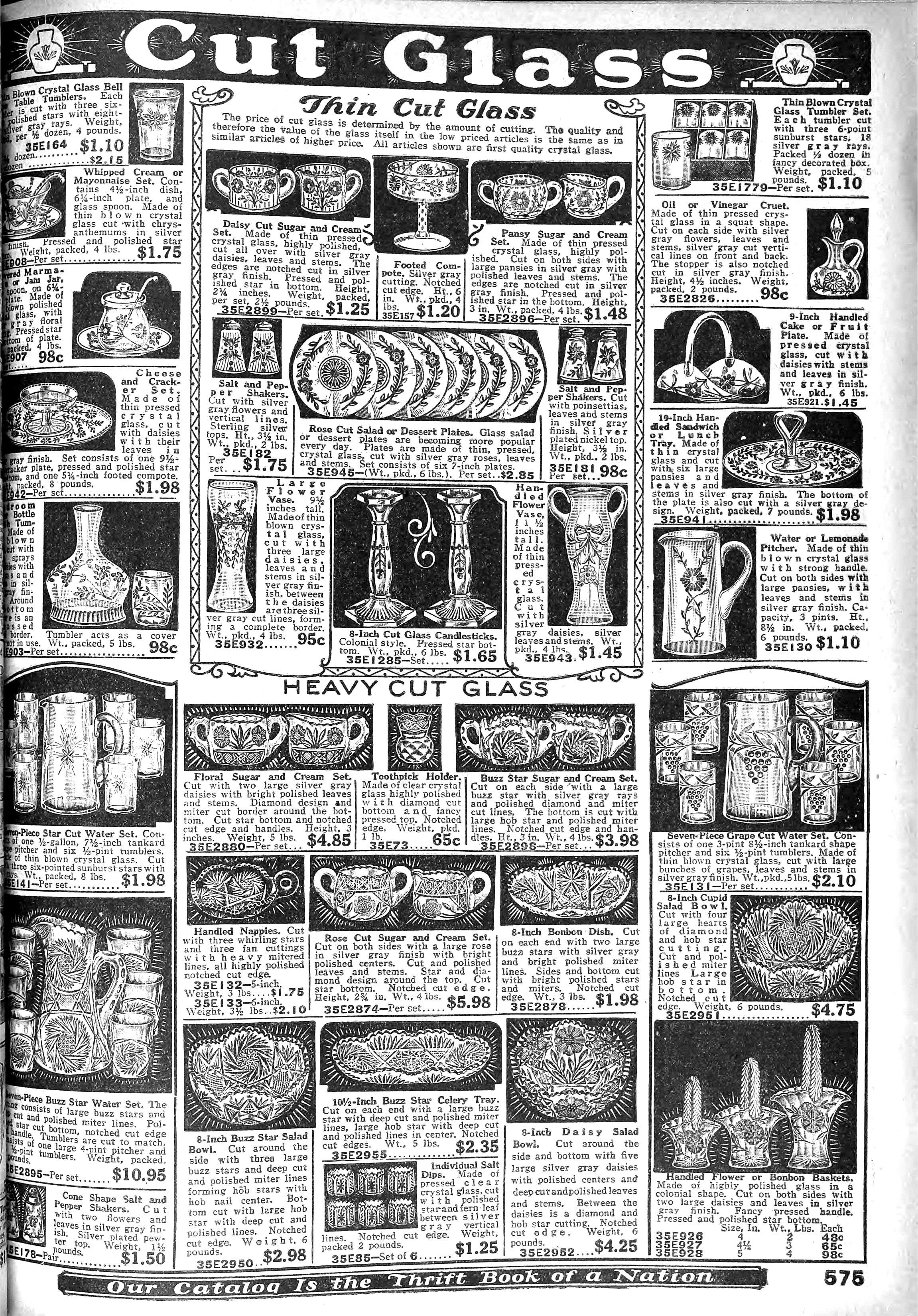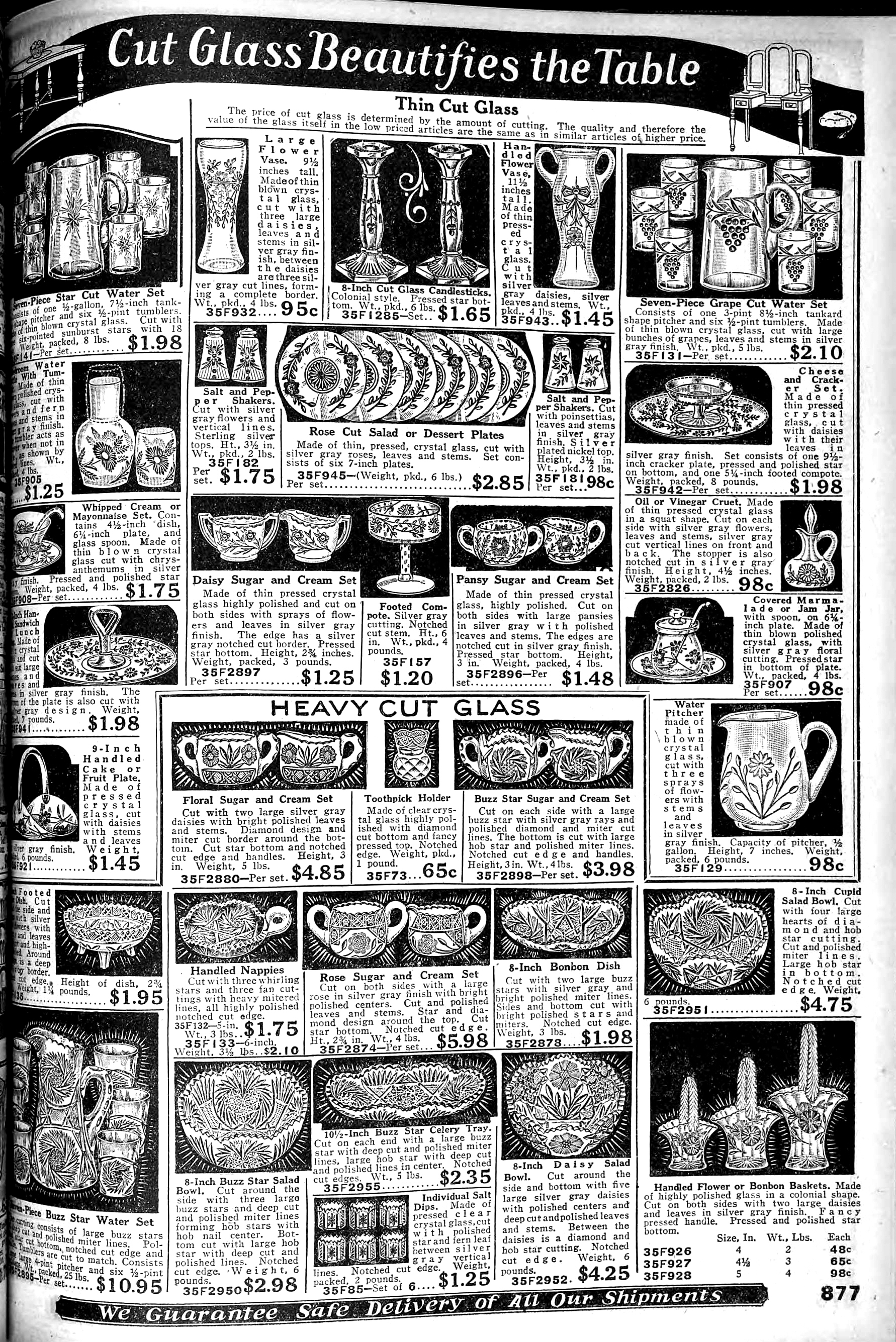 1926 Fall 877 Cheese and Cracker Set, Cut with Daises 1917/105 - 10" Cheese and Cracker, Cut 4077 $1.98/set