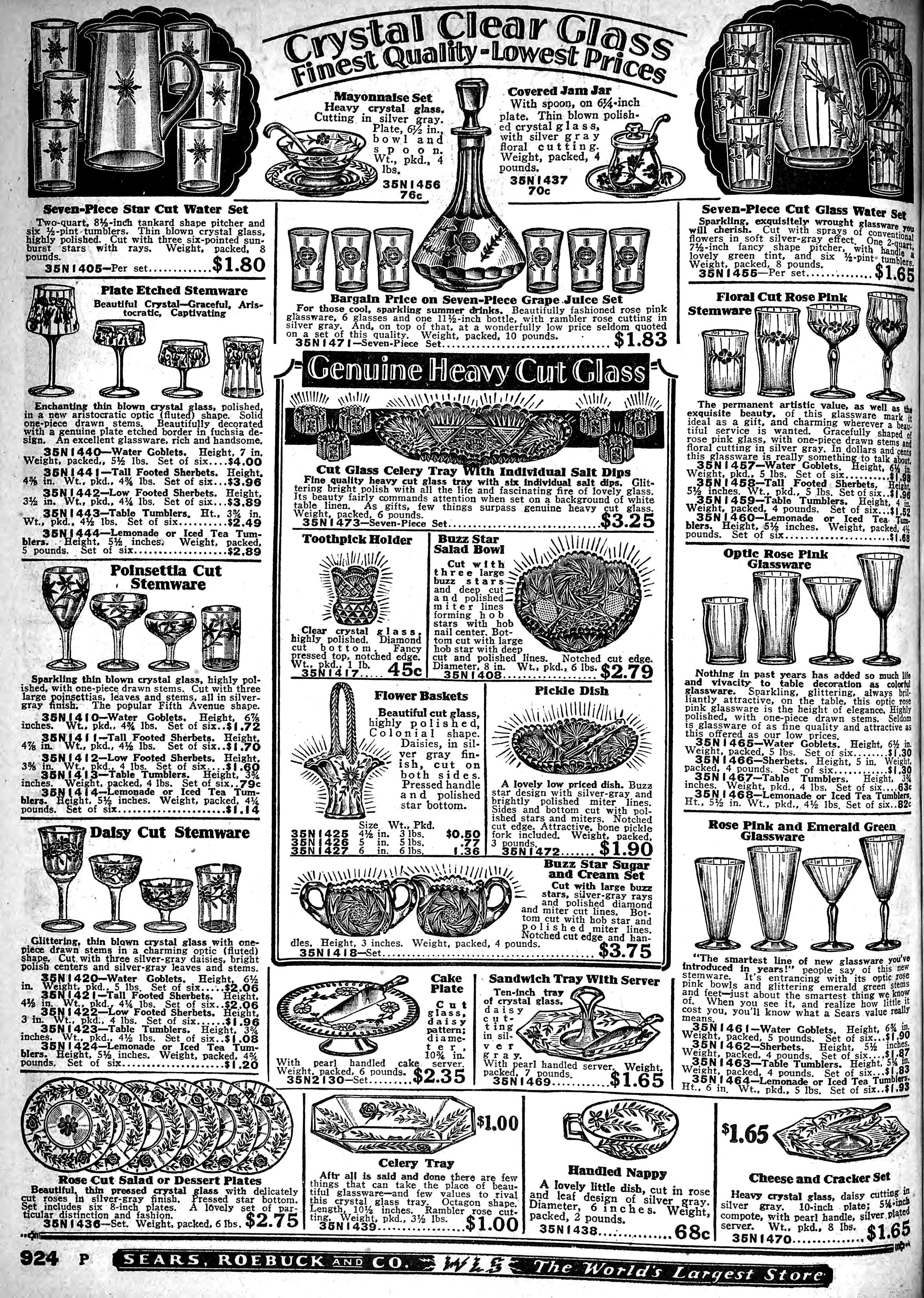 | 1928 | Fall | 924 | 7-Piece Star Cut Water Set ½-gallon Tankard Pitcher ½-pint Tumbler (6 pieces) |