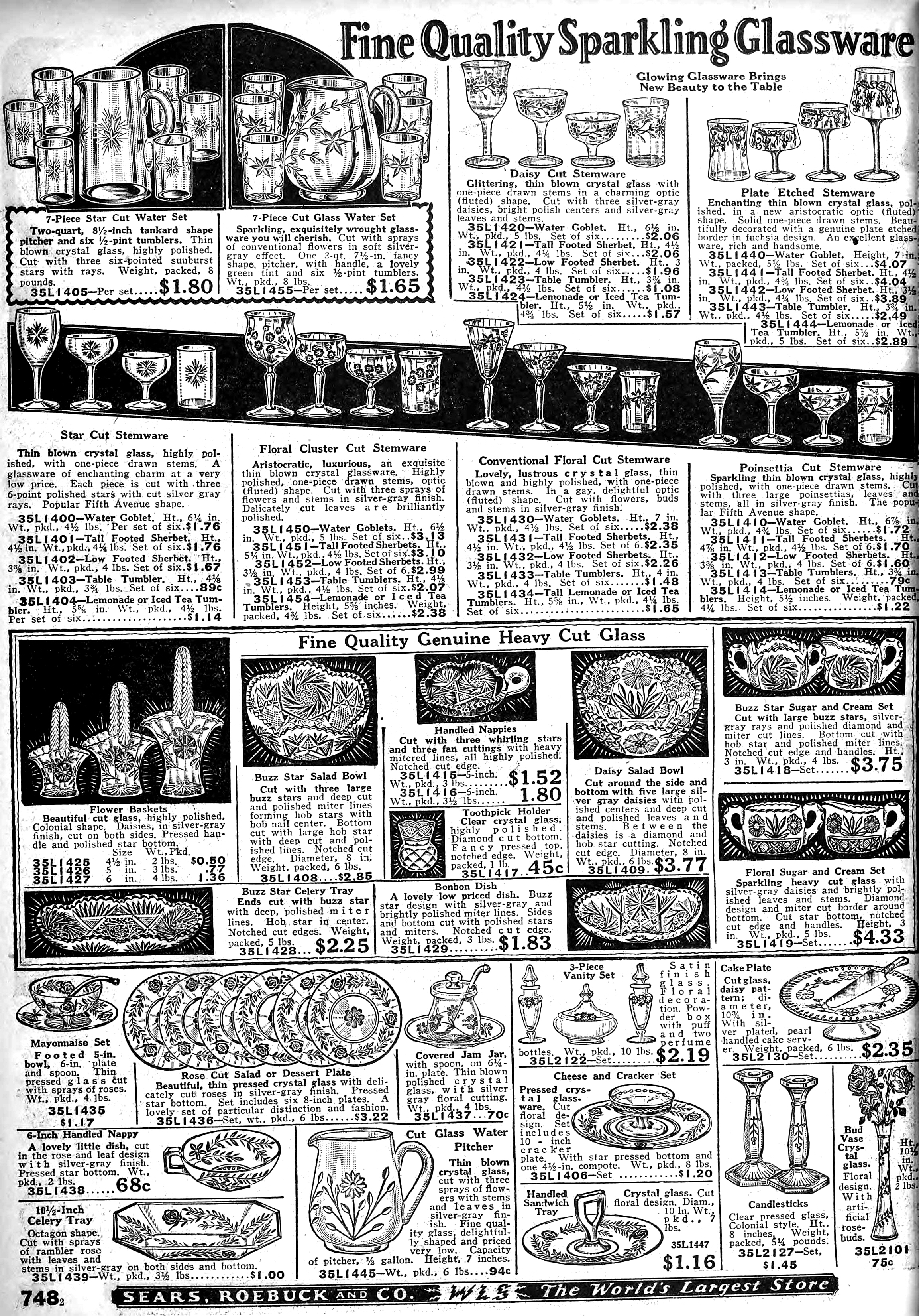 | 1928 | Spring | 748 | Star Cut Stemware Water Goblet Tall Footed Sherbet Low Footed Sherbet Standard Table Tumbler Tall Lemonade or Iced Tea Tumbler |
