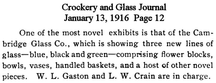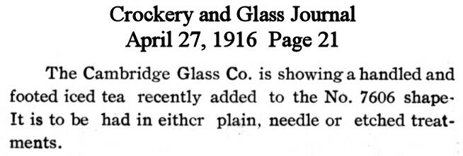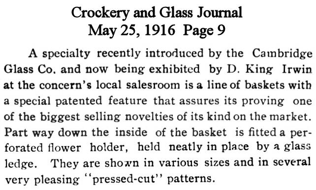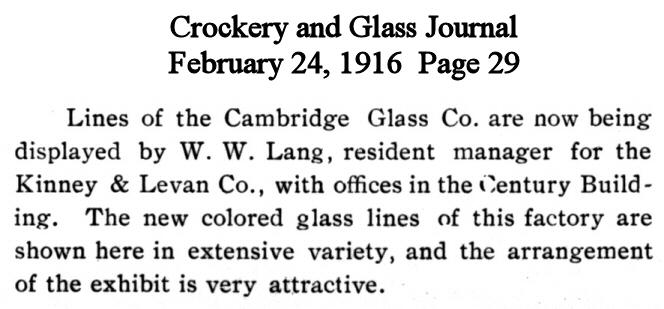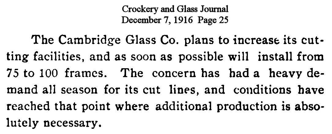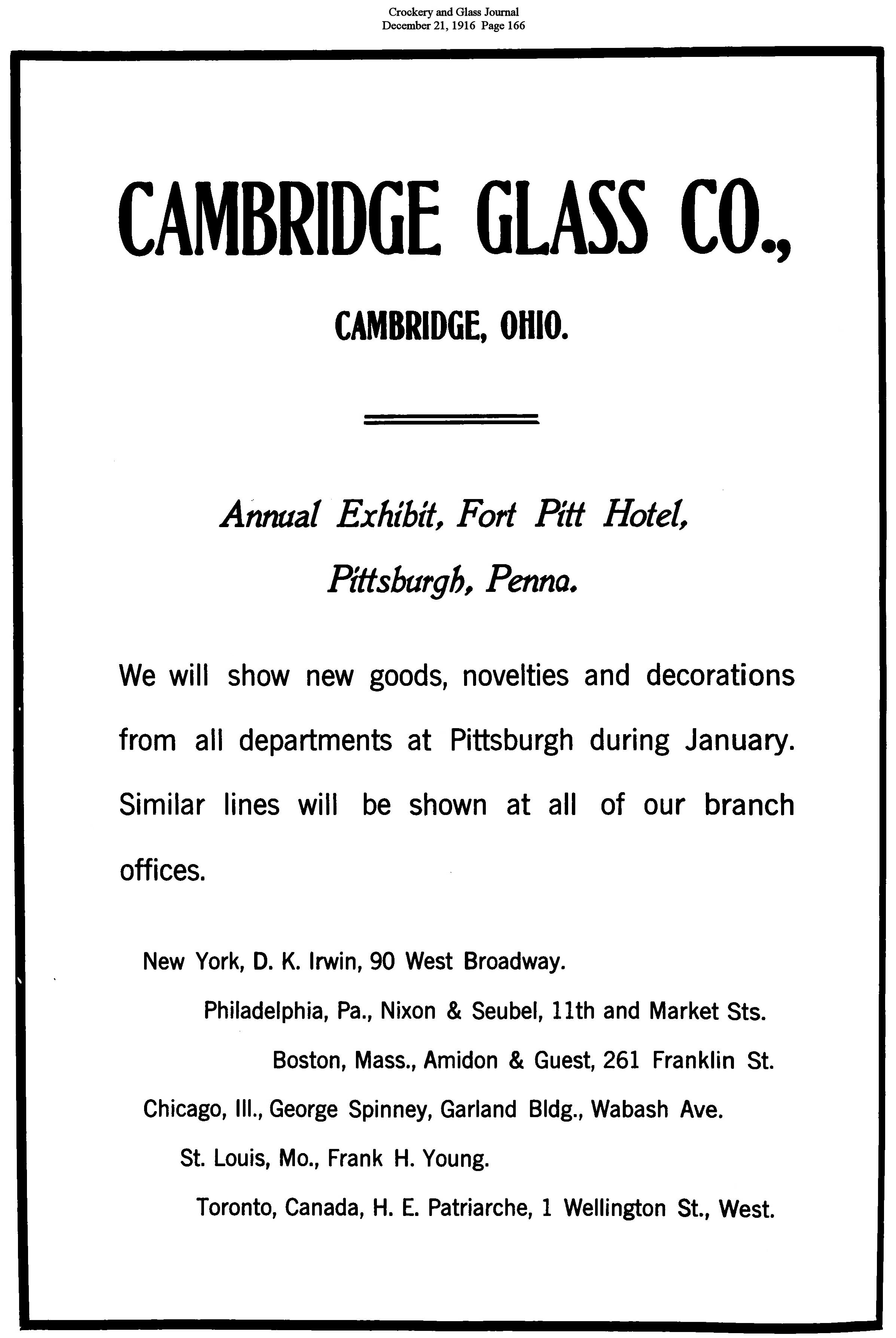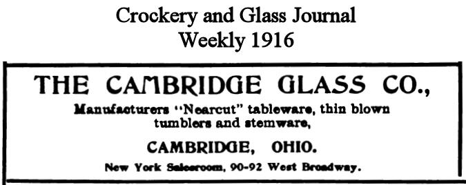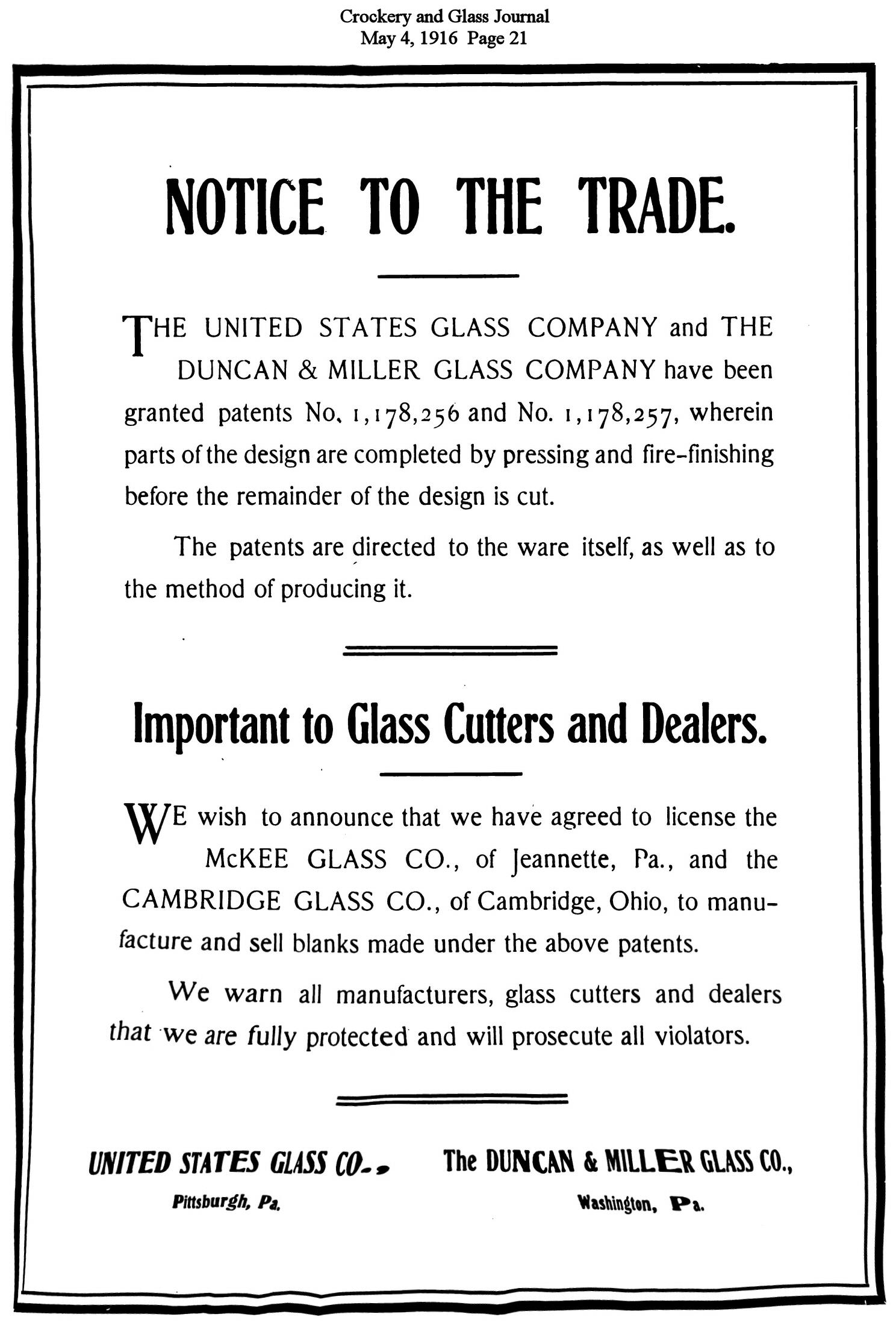 - Cambridge licensed by U S Glass and Duncan Miller to mfg certain pressed and cut lines under their patents