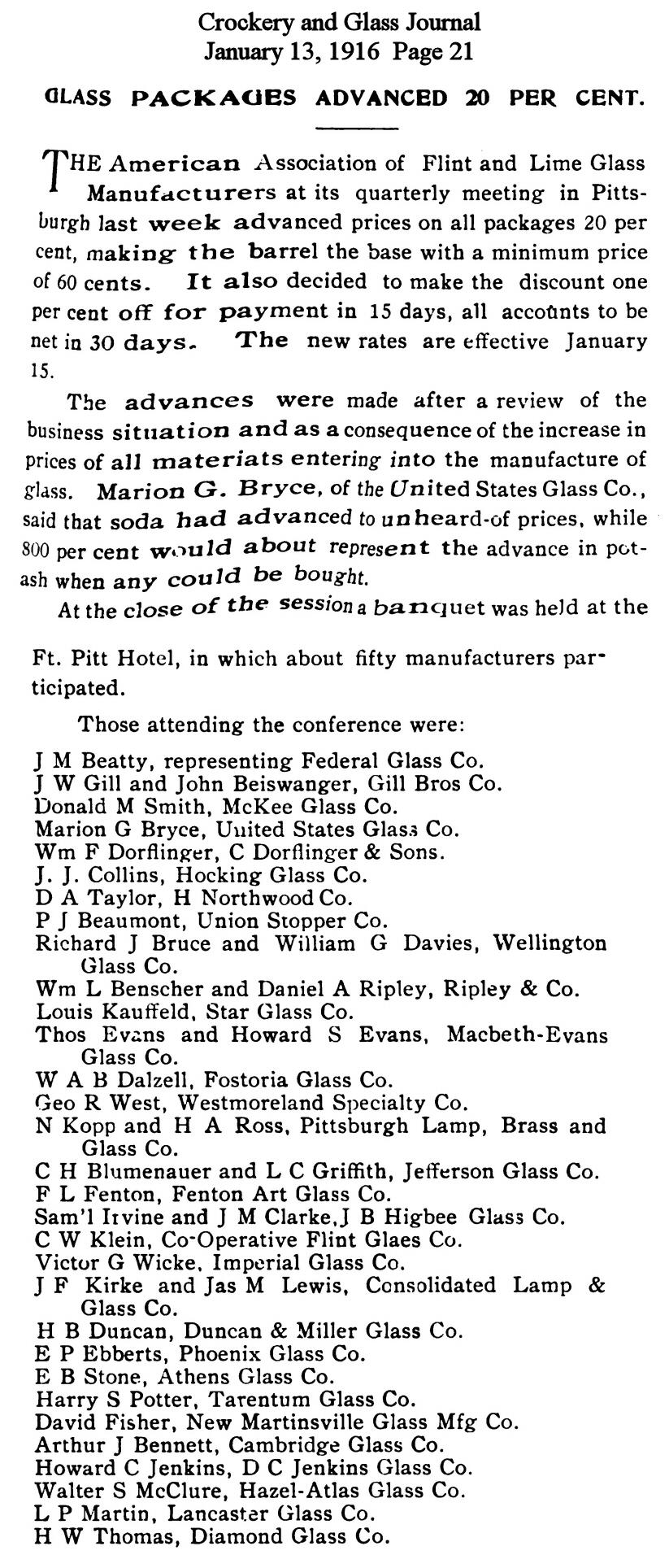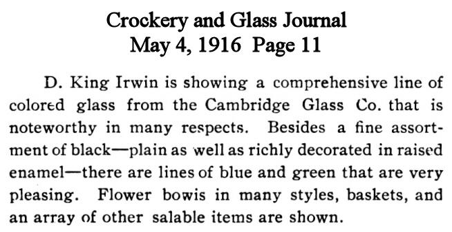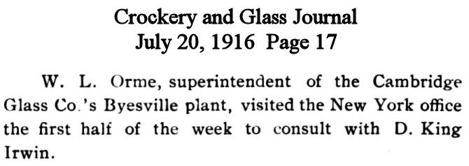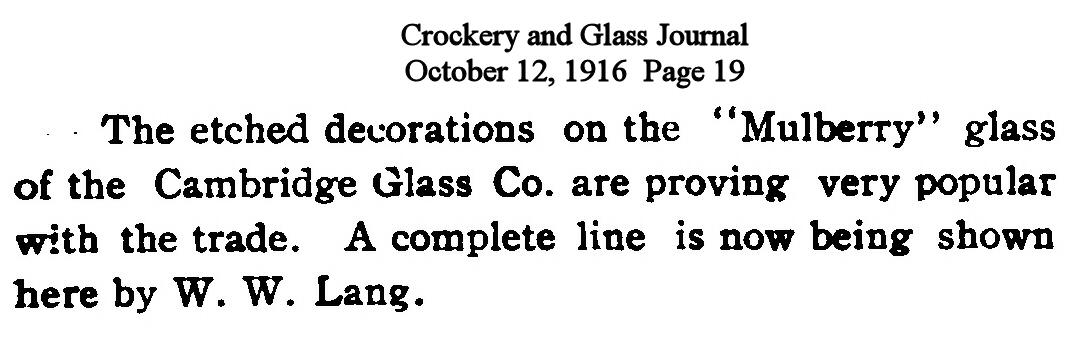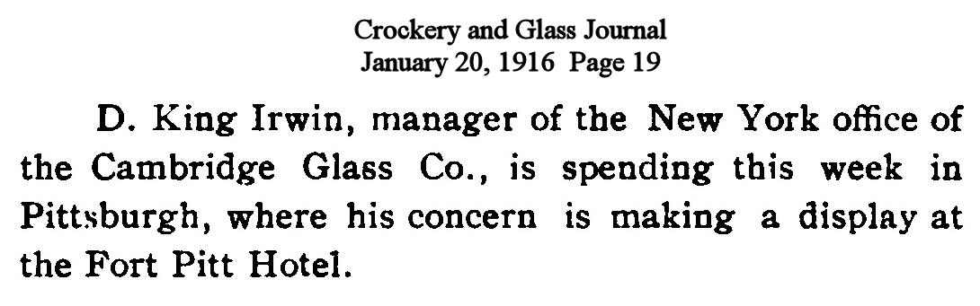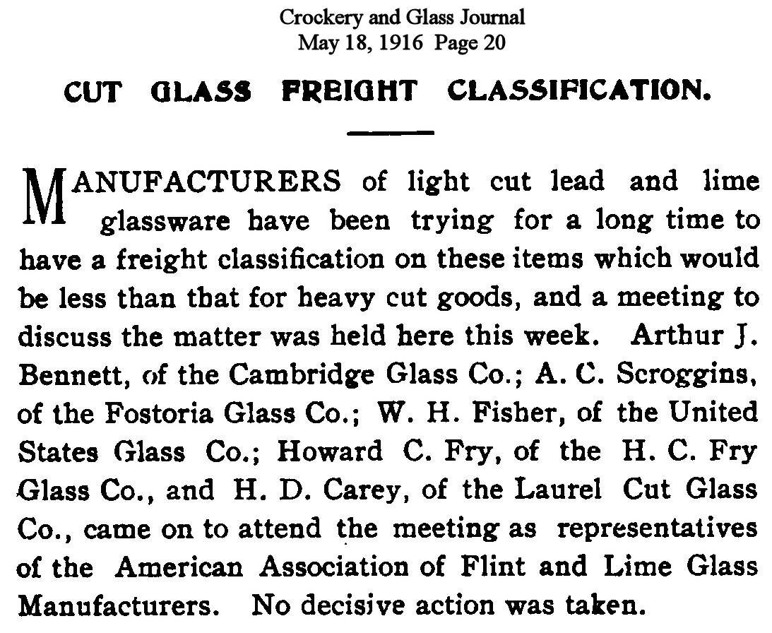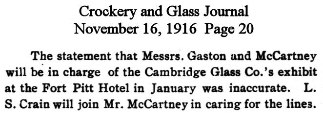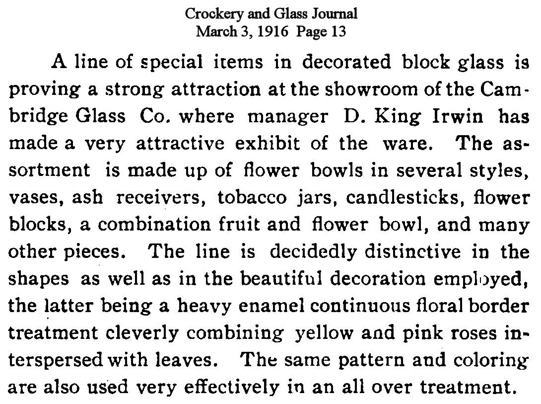 - Cambridge licensed by U S Glass and Duncan Miller to mfg certain pressed and cut lines under their patents