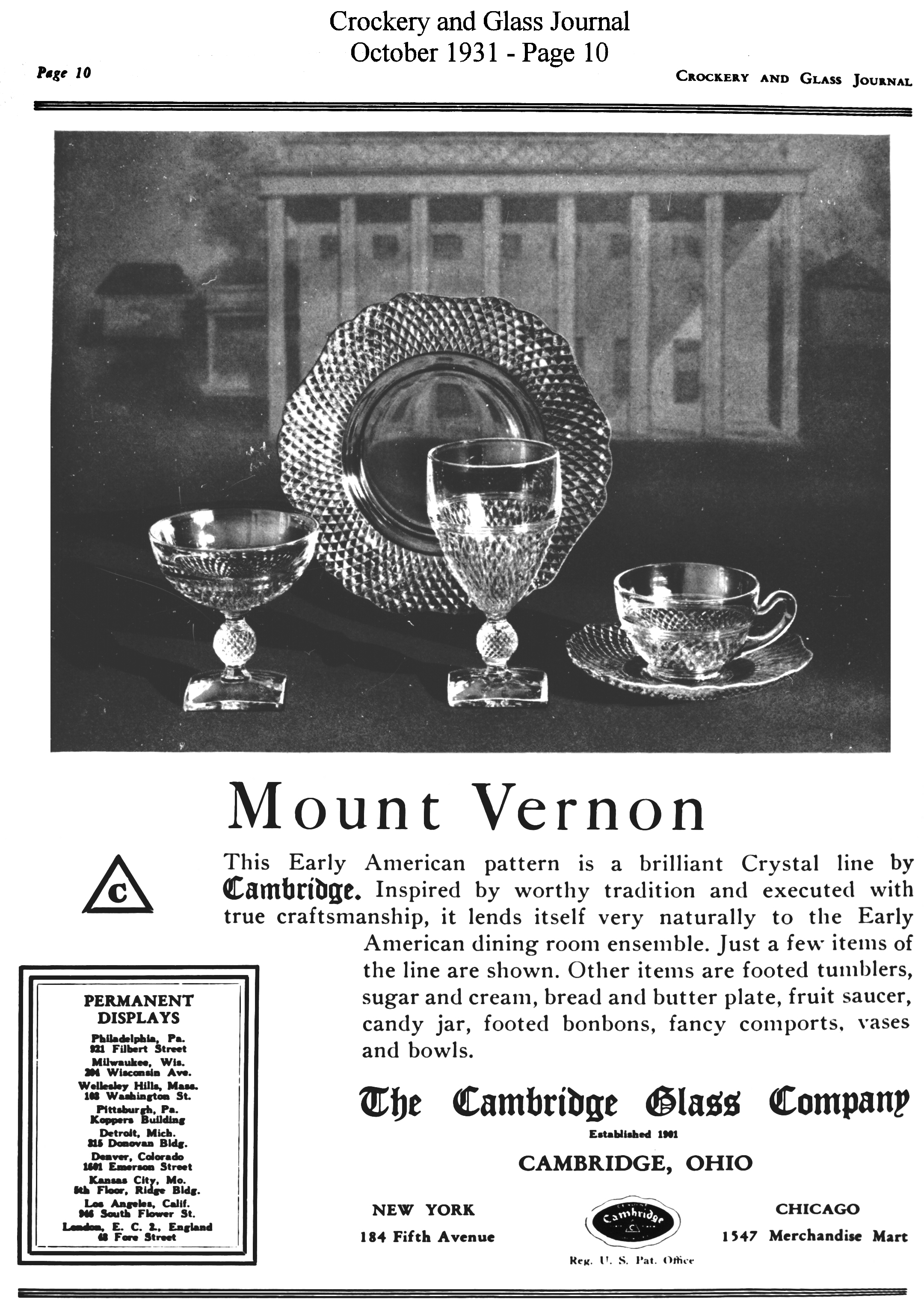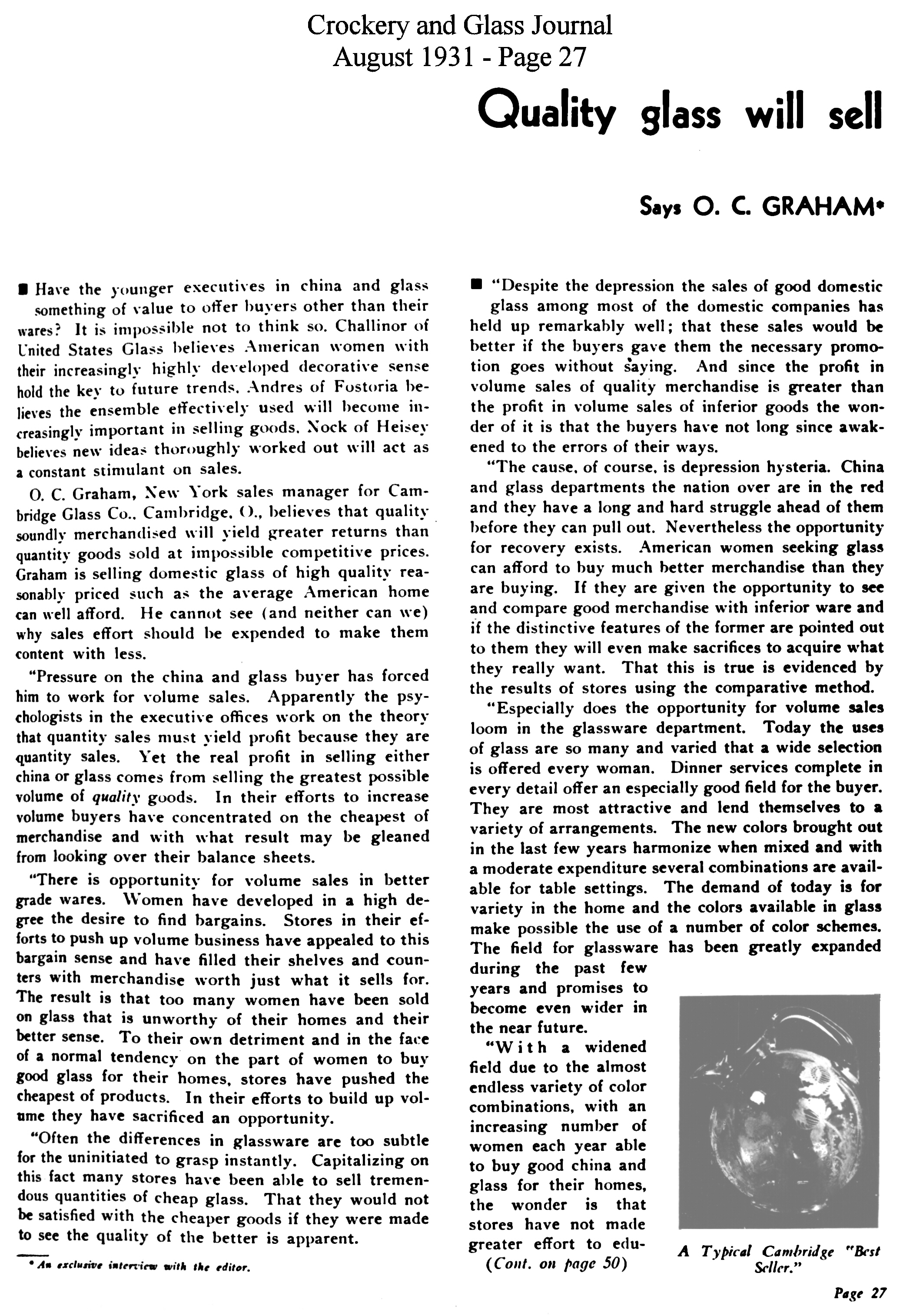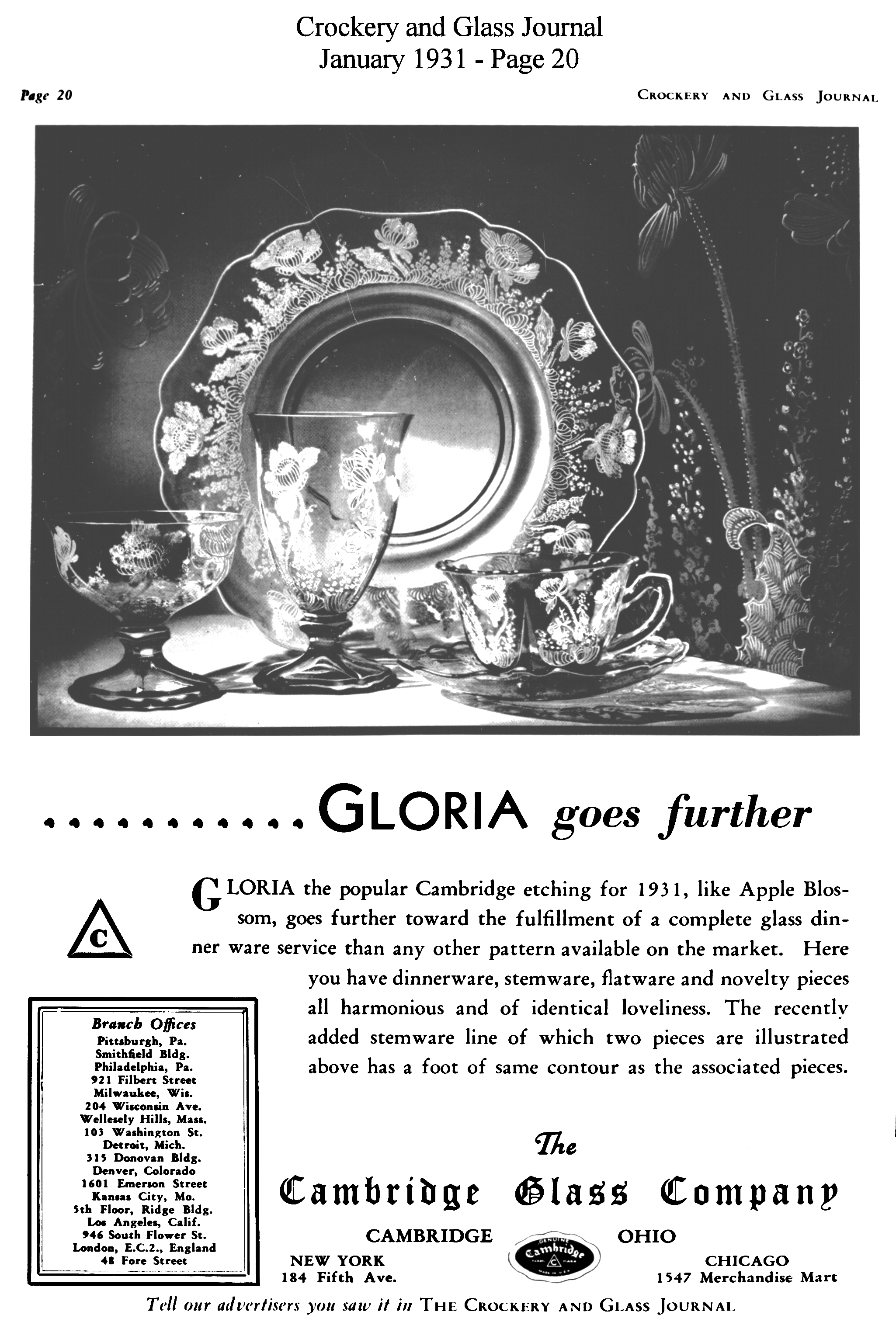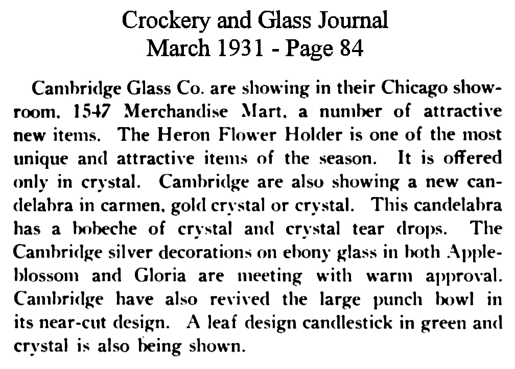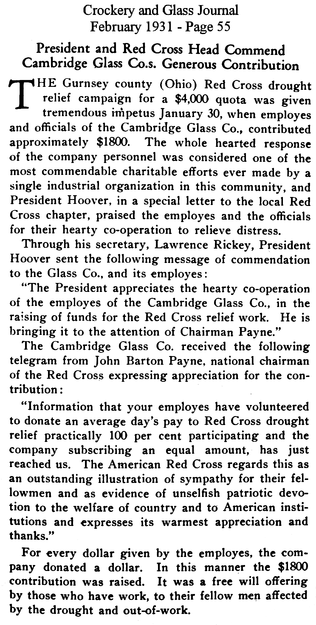 - President Hoover recognizes Cambridge Glass contribution to Red Cross national campaign for drought relief