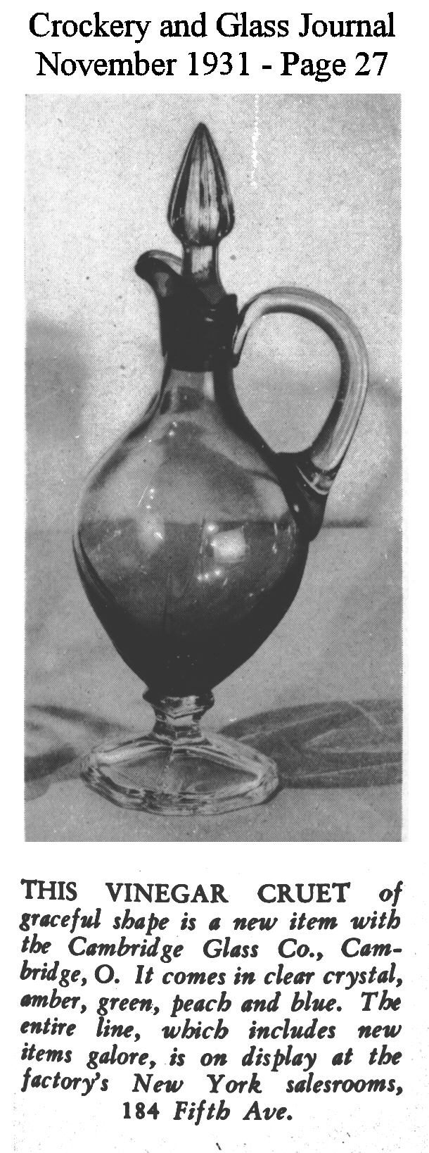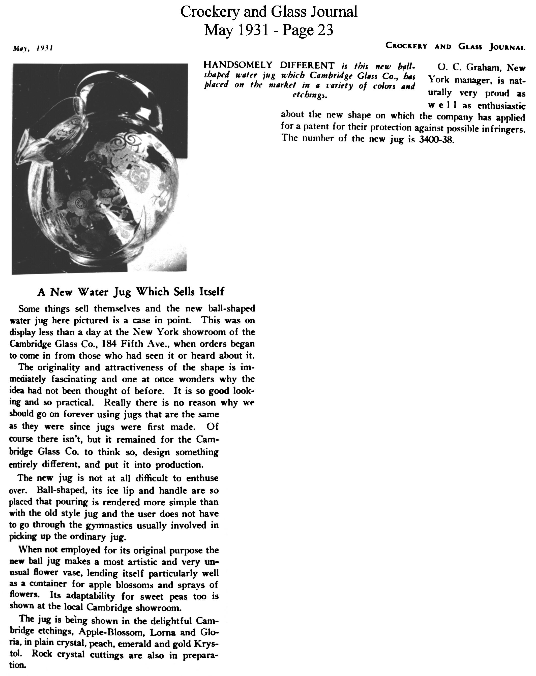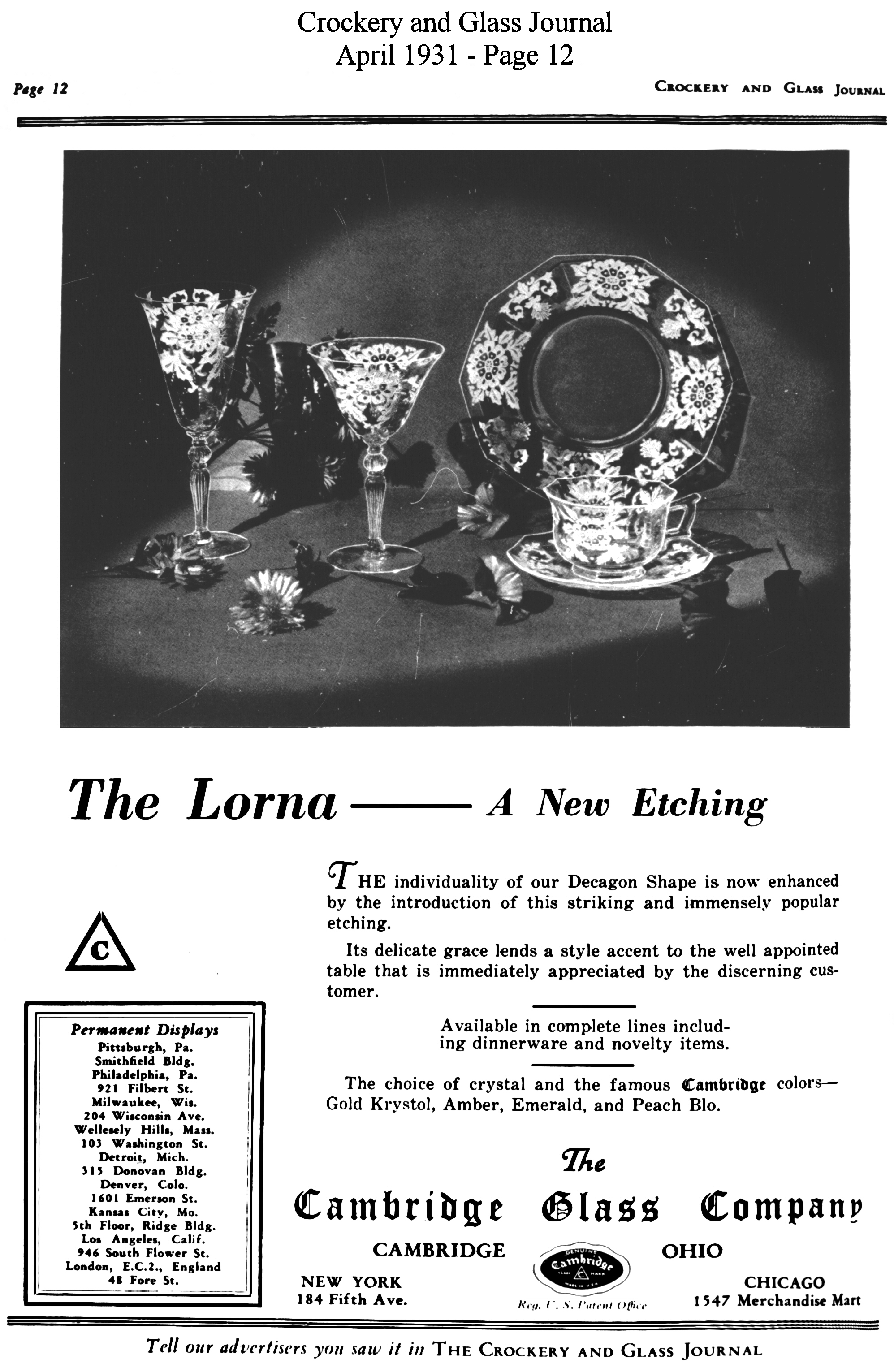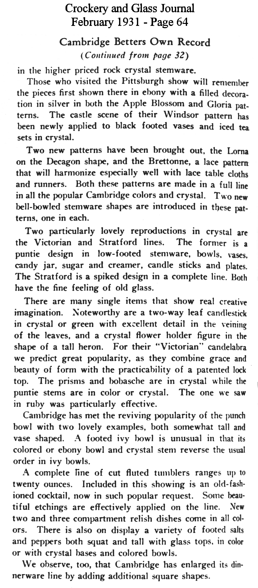 - President Hoover recognizes Cambridge Glass contribution to Red Cross national campaign for drought relief