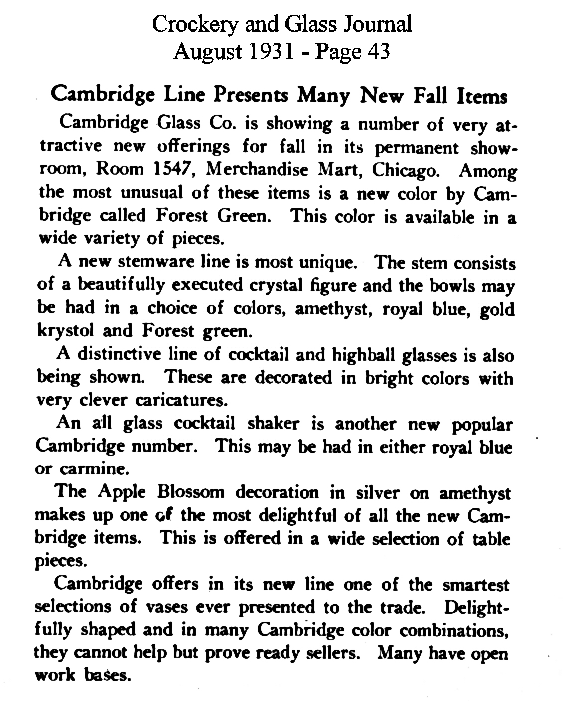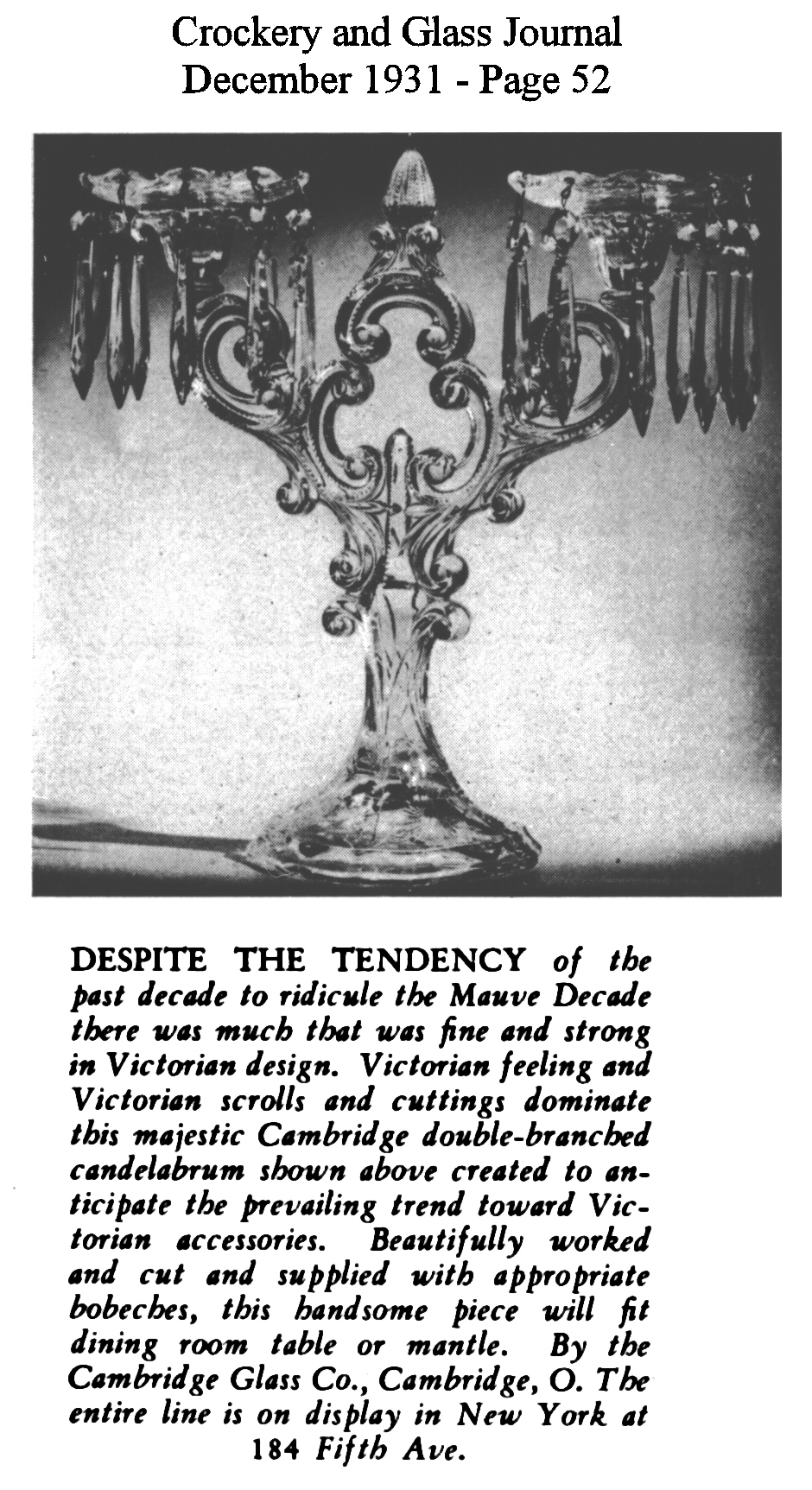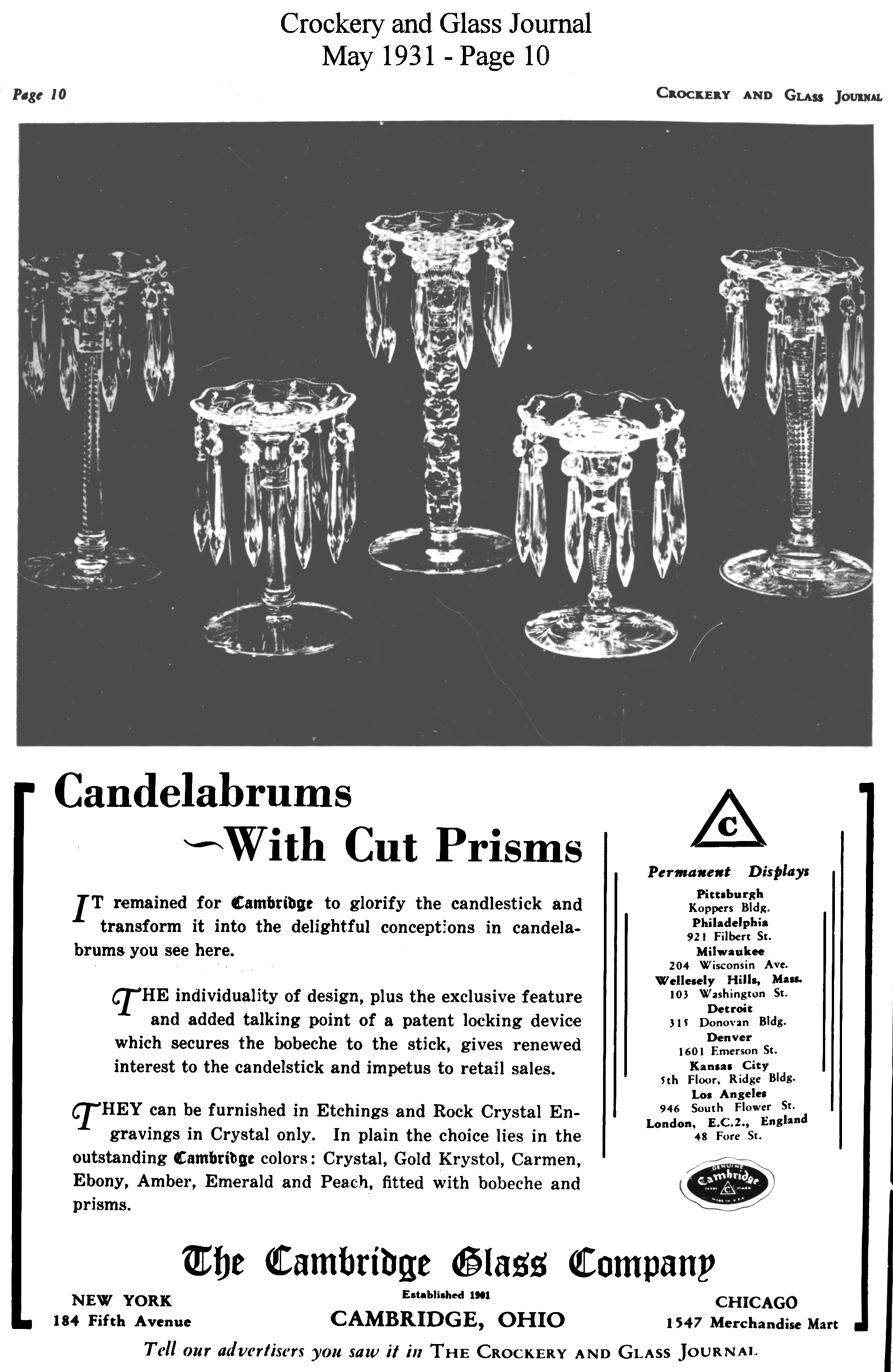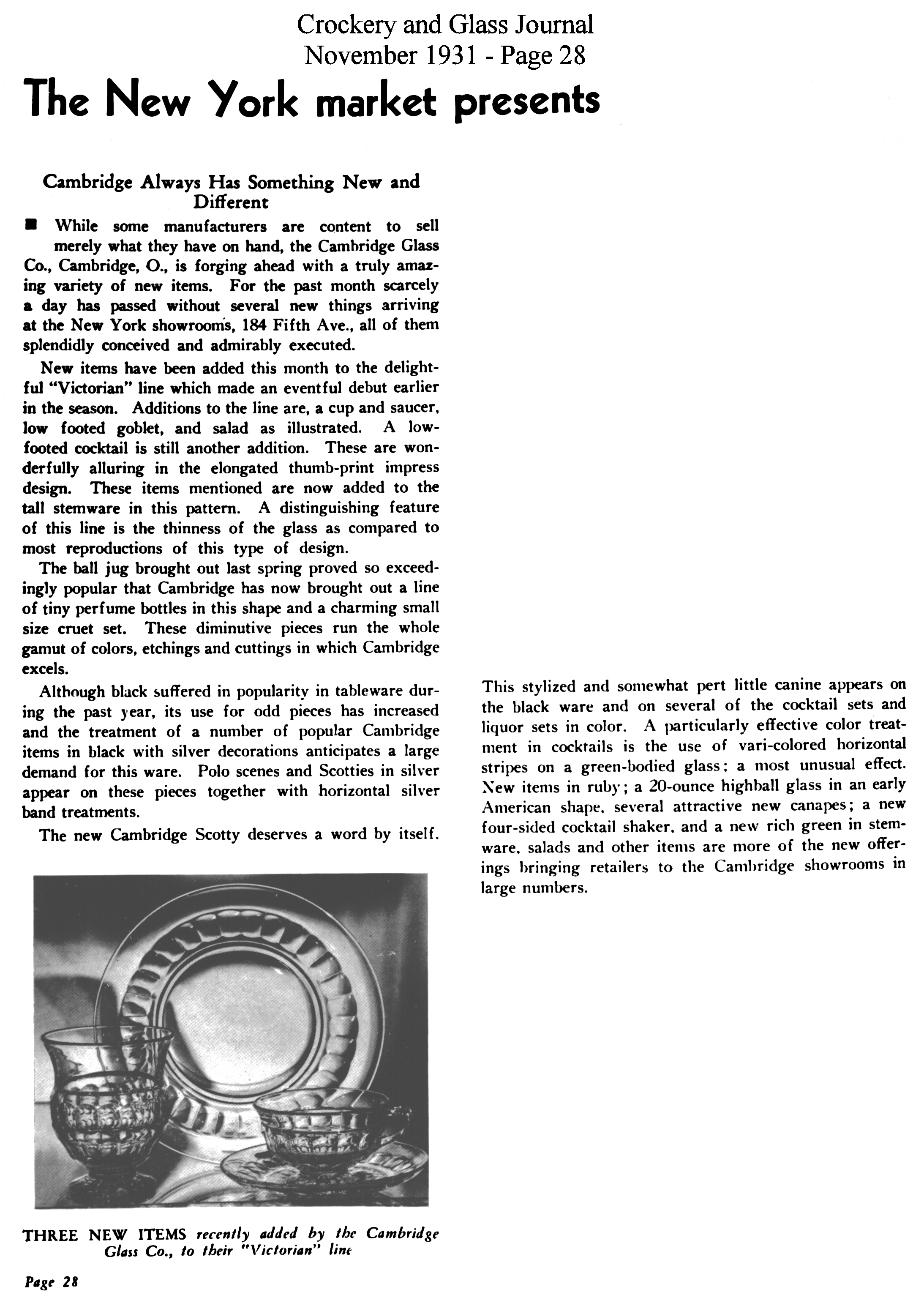 - President Hoover recognizes Cambridge Glass contribution to Red Cross national campaign for drought relief