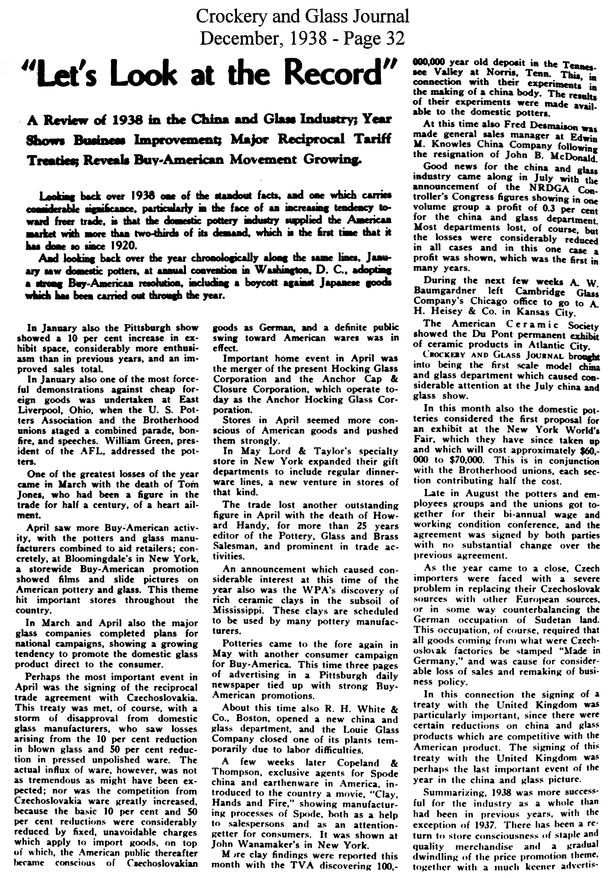 - Howard Handy, Editor of the Pottery, Glass, & Brass Salesman dies
