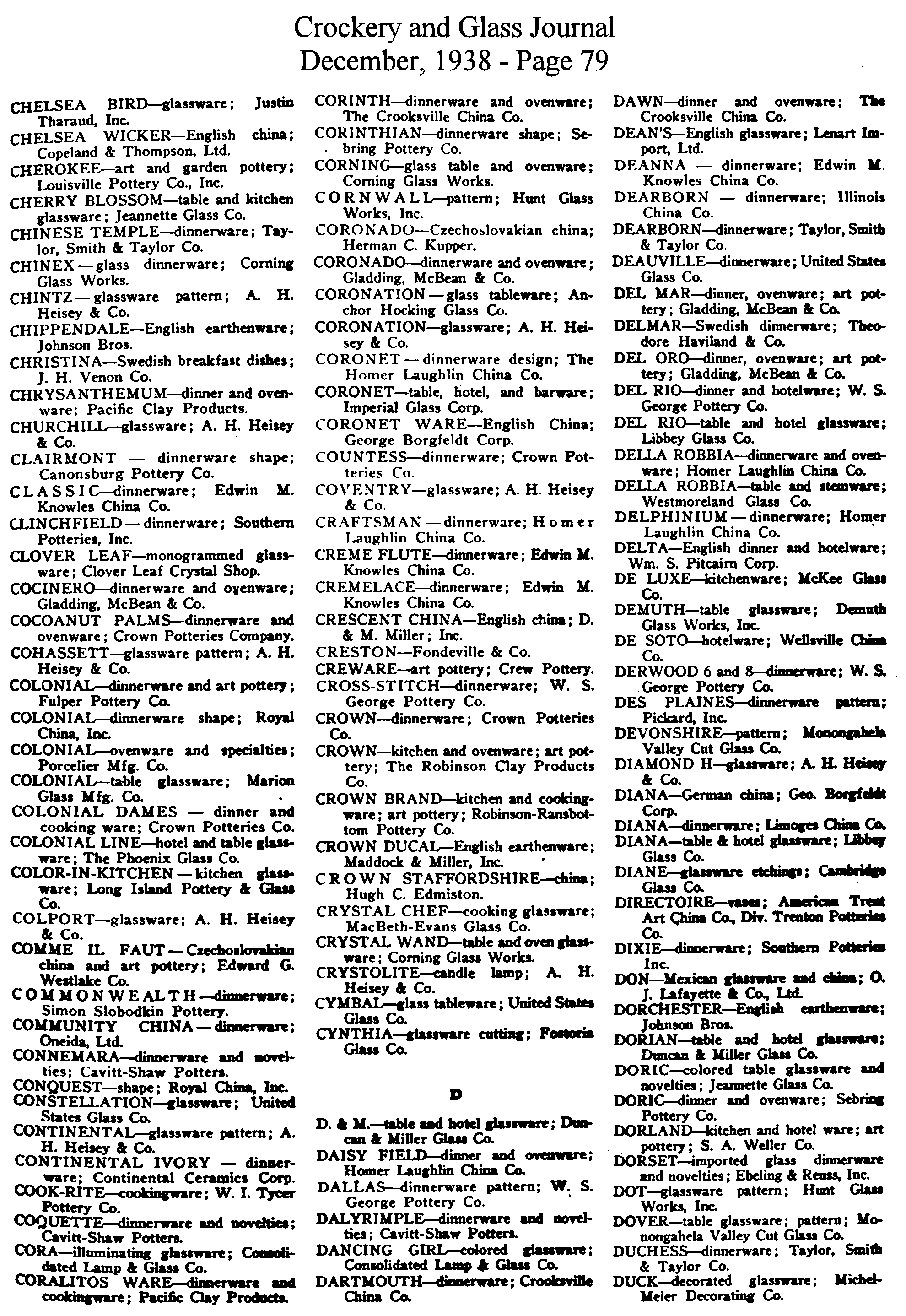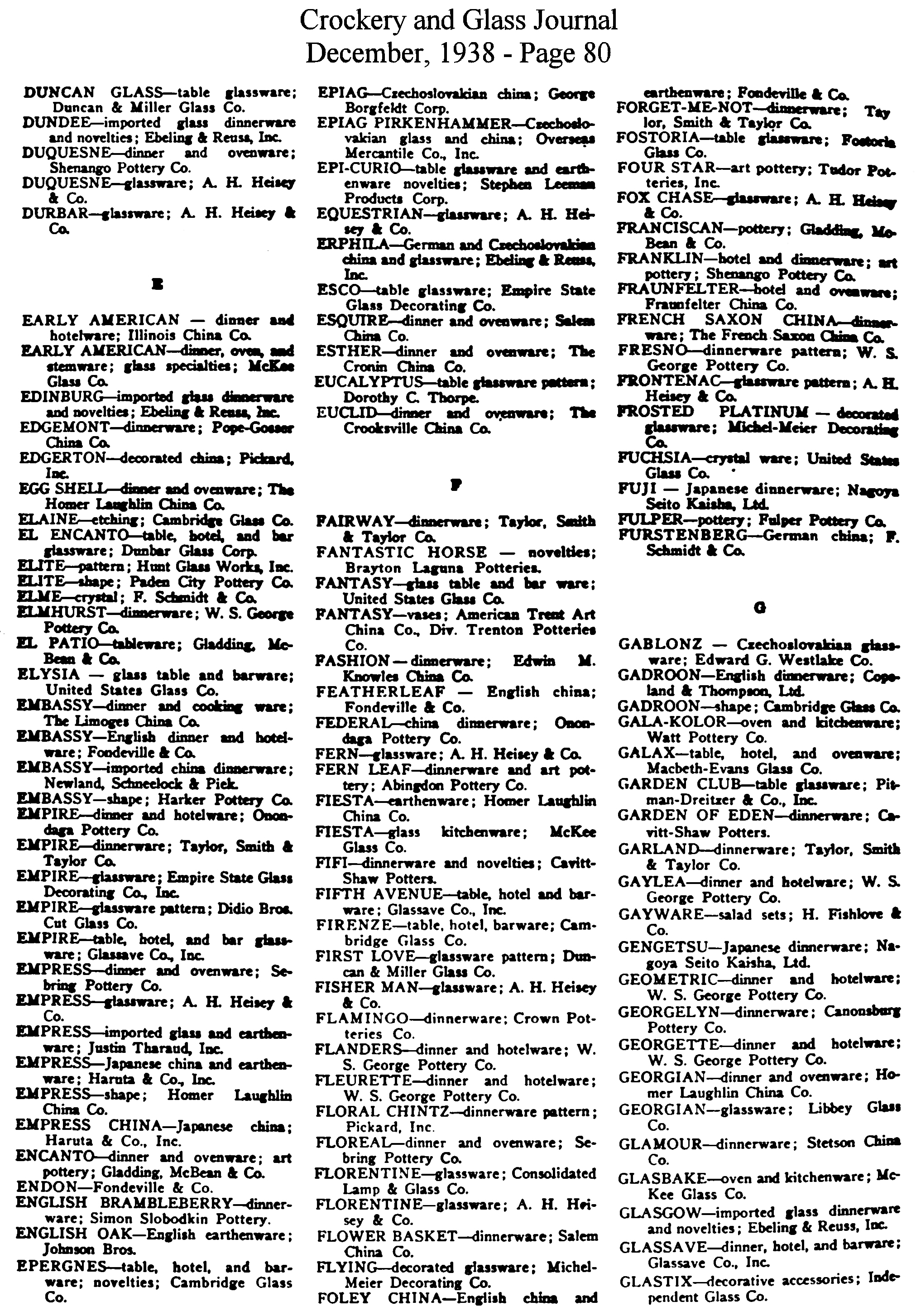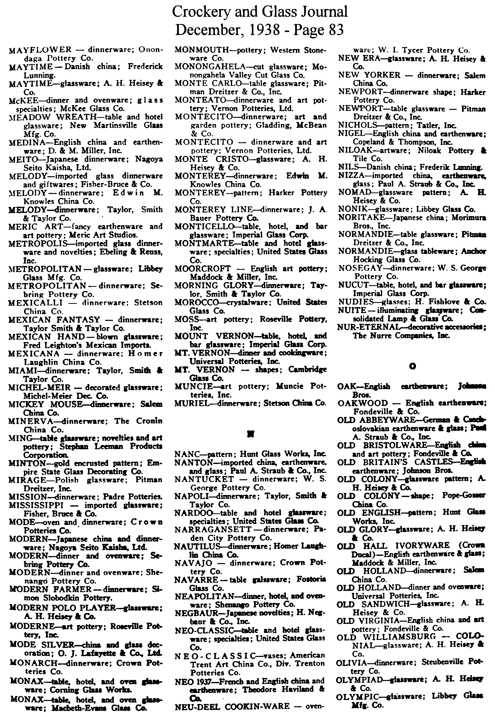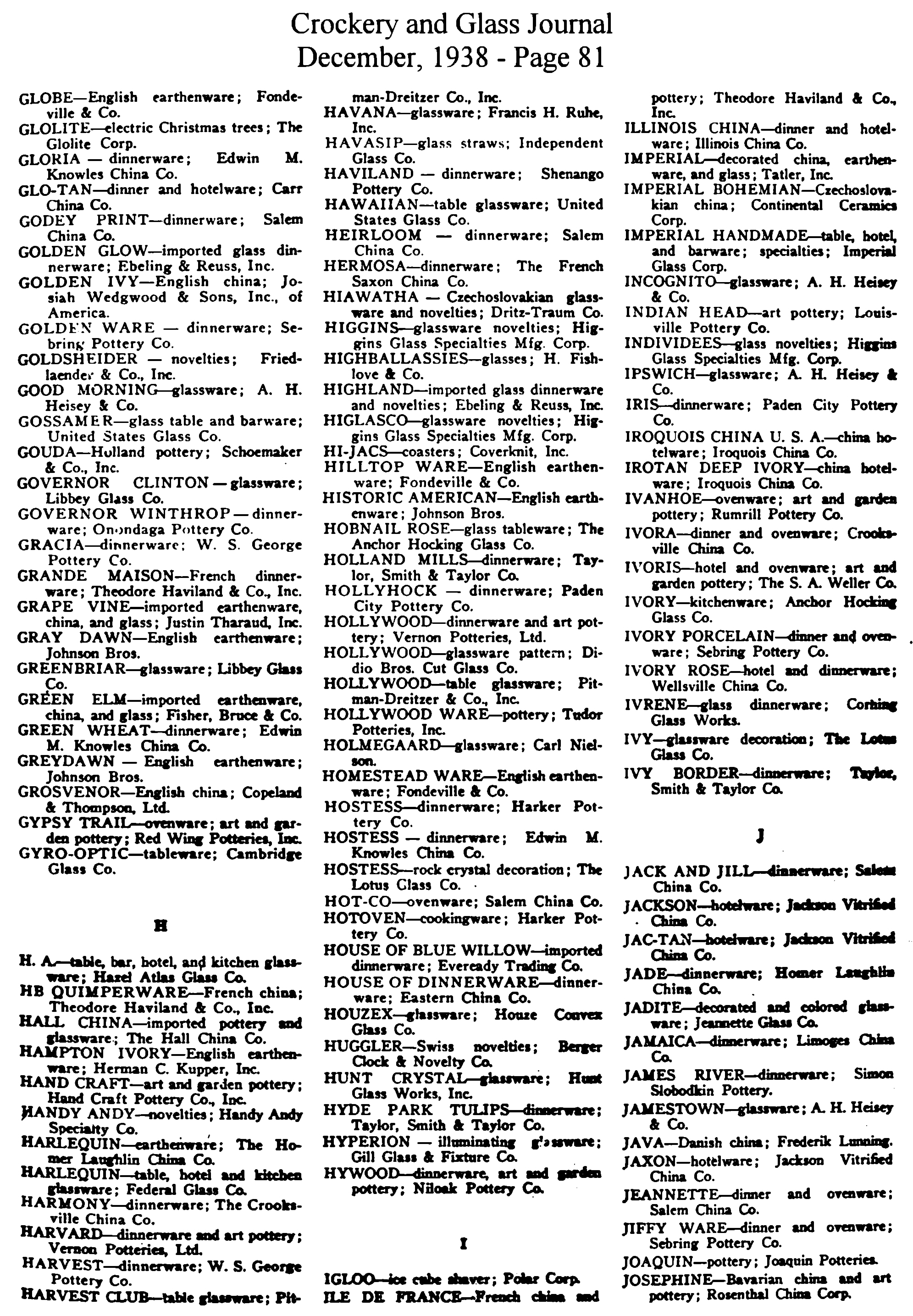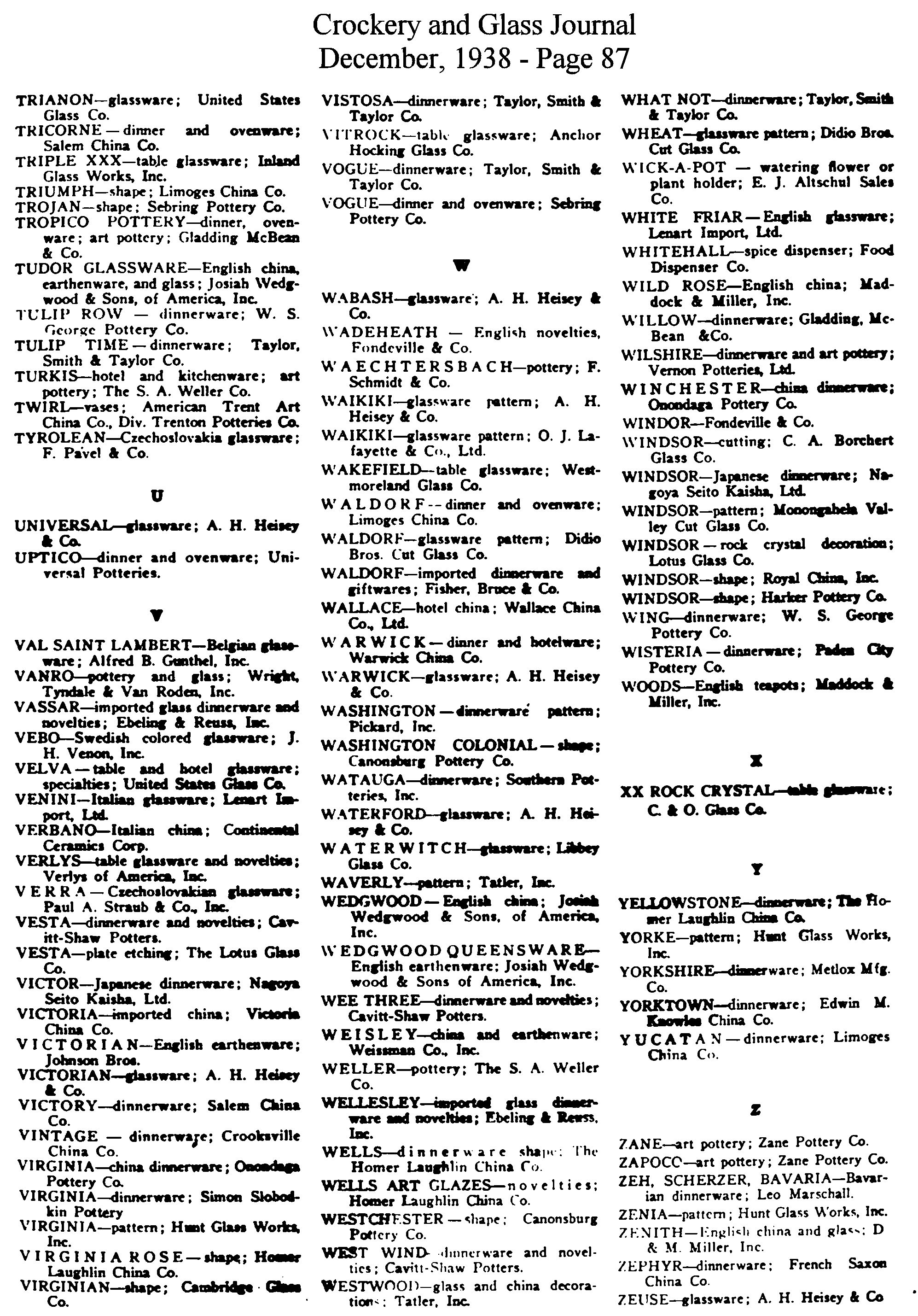 - List of Trade Names (December issue)
