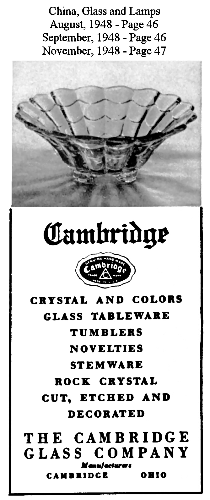 China, Glass and Lamps - 1948