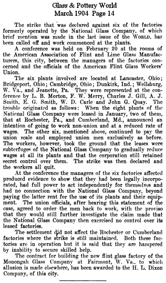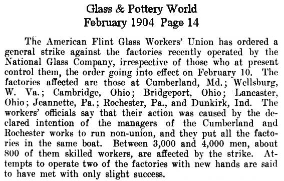 American Flint Glass Workers Order Strike at 6 Plants including Camridge