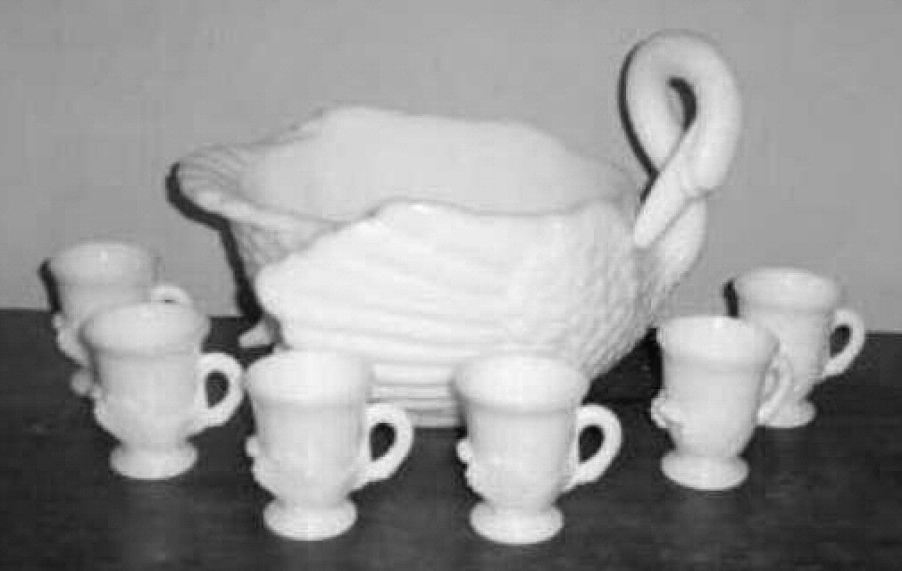Milk Glass Swan Punch bowl & matching Swan Cups