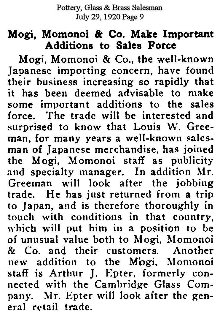 The Pottery, Glass and Brass Salesman - 1920